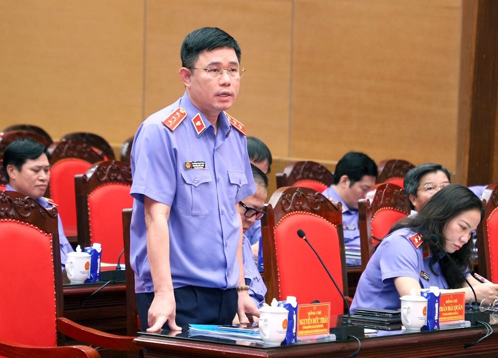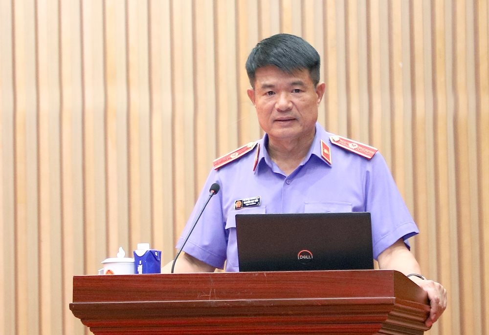 Đồng chí Nguyễn Đức Thái, Phó Viện trưởng VKSND tối cao điều hành tham luận tại Hội nghị.
