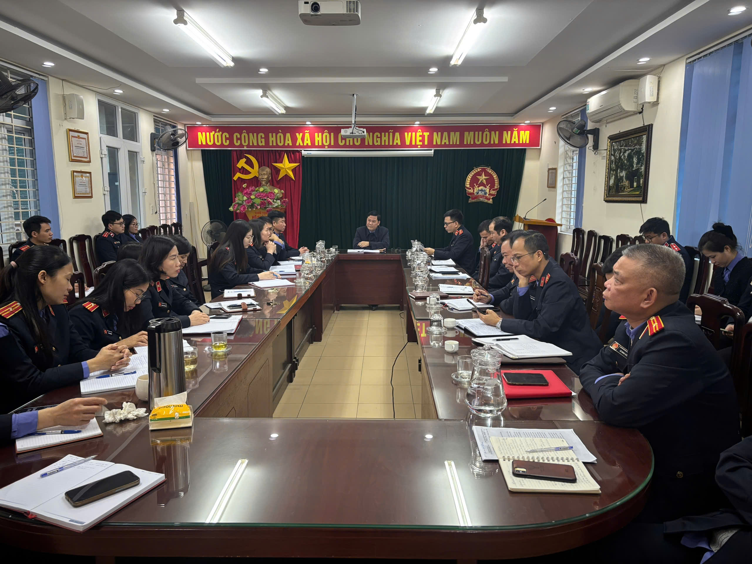Đồng chí Phùng Quốc Toản – Bí thư Chi bộ, Viện trưởng VKSND Khu vực 9 – Hà Nội quán triệt, phổ biến nội dung tuyên truyền về cuộc bầu cử đại biểu Quốc hội khóa XVI và đại biểu Hội đồng nhân dân các cấp nhiệm kỳ 2026–2031 đến công chức, đoàn viên trong đơn vị.