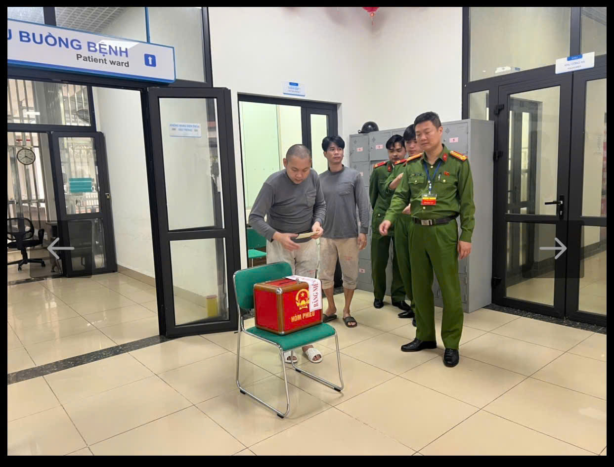 Tổ công tác Trại tạm giam số 2 - CATP Hà Nội tổ chức cho cử tri là người bị tạm giam đang điều trị bỏ phiếu