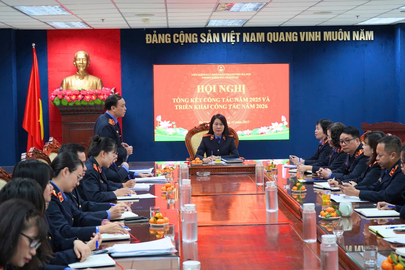Ngày 02/12/2025, tại trụ sở Viện KSND thành phố Hà Nội, Phòng 9 tổ chức Hội nghị triển khai công tác năm 2026 dưới sự chỉ đạo của đồng chí Lê Thị Thu Nguyệt - Phó Viện trưởng Viện KSND thành phố Hà Nội.