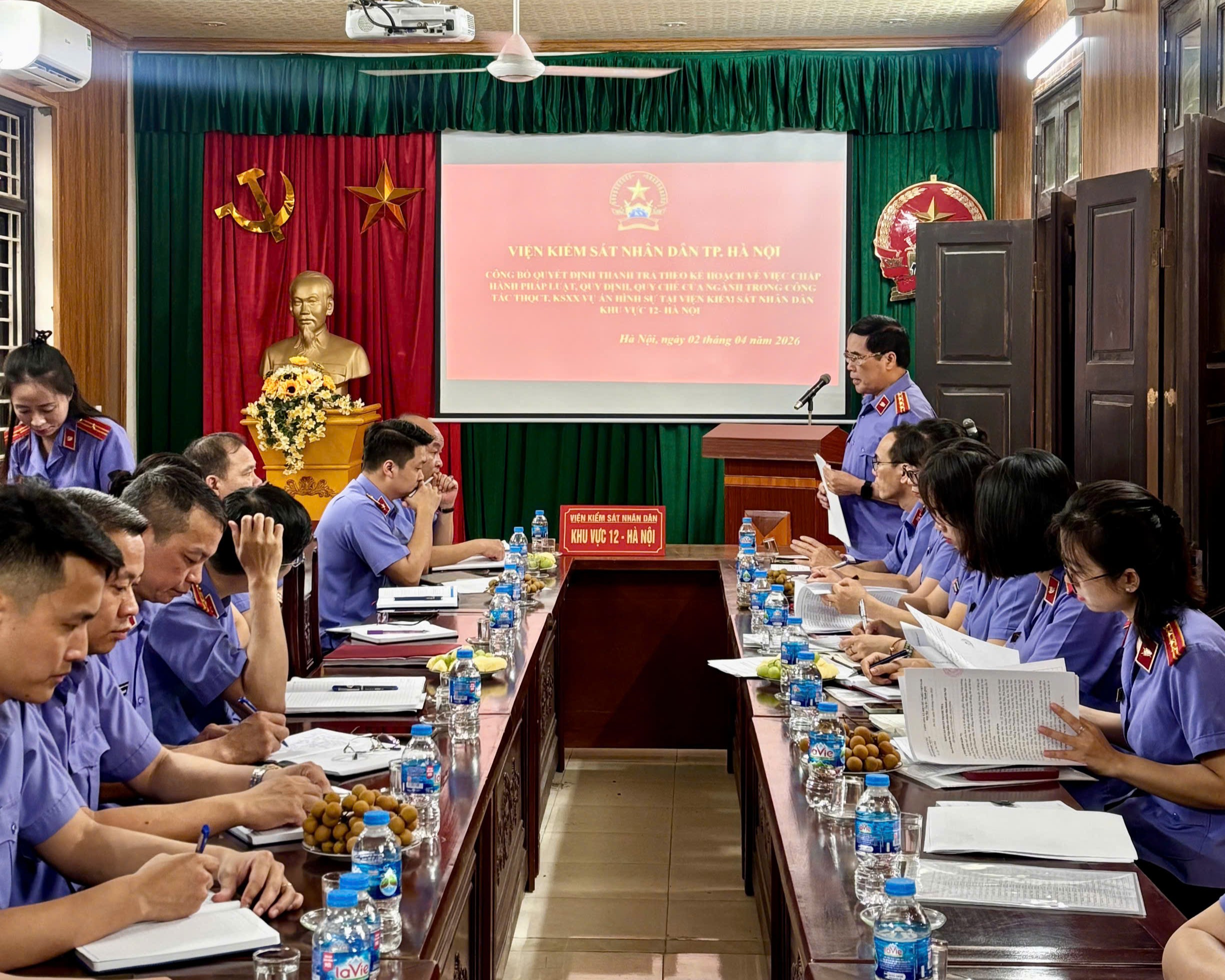 Thực hiện Kế hoạch công tác thanh tra, kiểm tra năm 2026 của Viện KSND thành phố Hà Nội, ngày 02/4/2026, Đoàn Thanh tra Viện KSND thành phố Hà Nội đã tiến hành thanh tra theo kế hoạch tại Viện KSND khu vực 12 - Hà Nội về công tác thực hành quyền công tố và kiểm sát xét xử án hình sự.