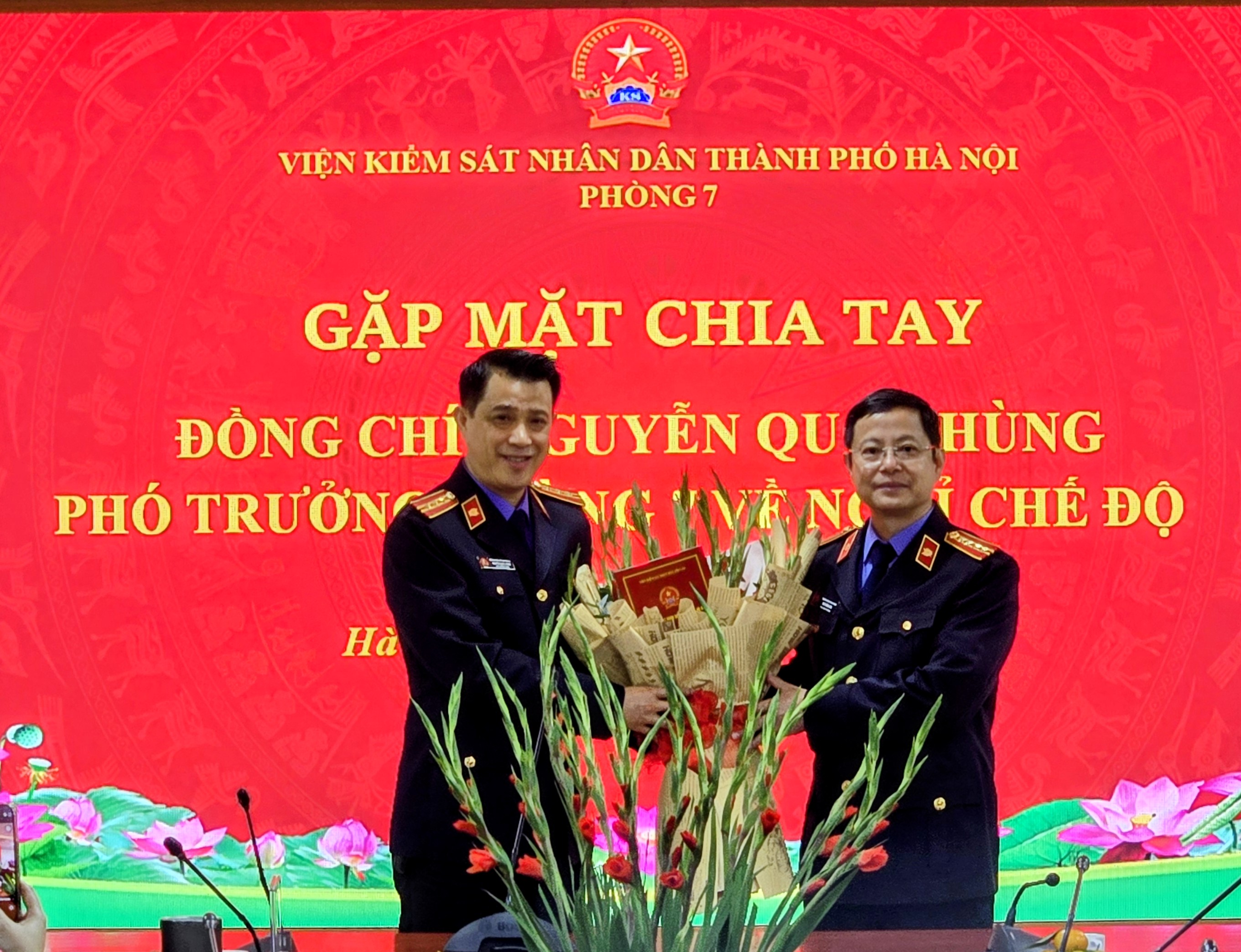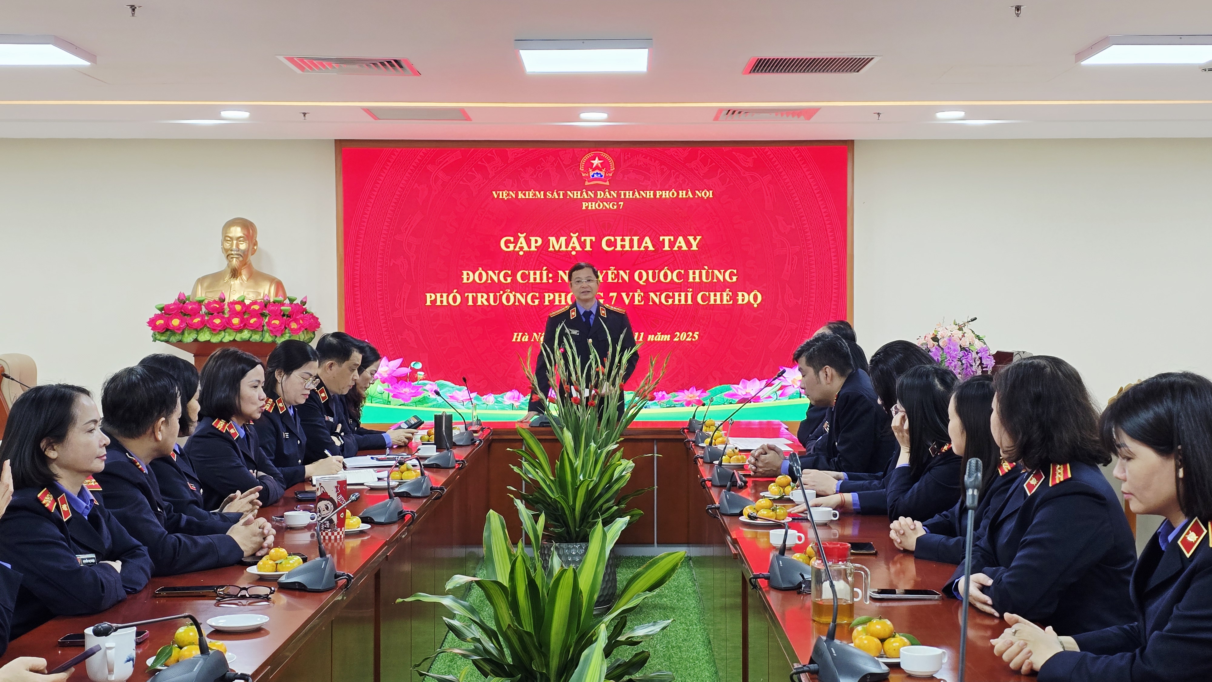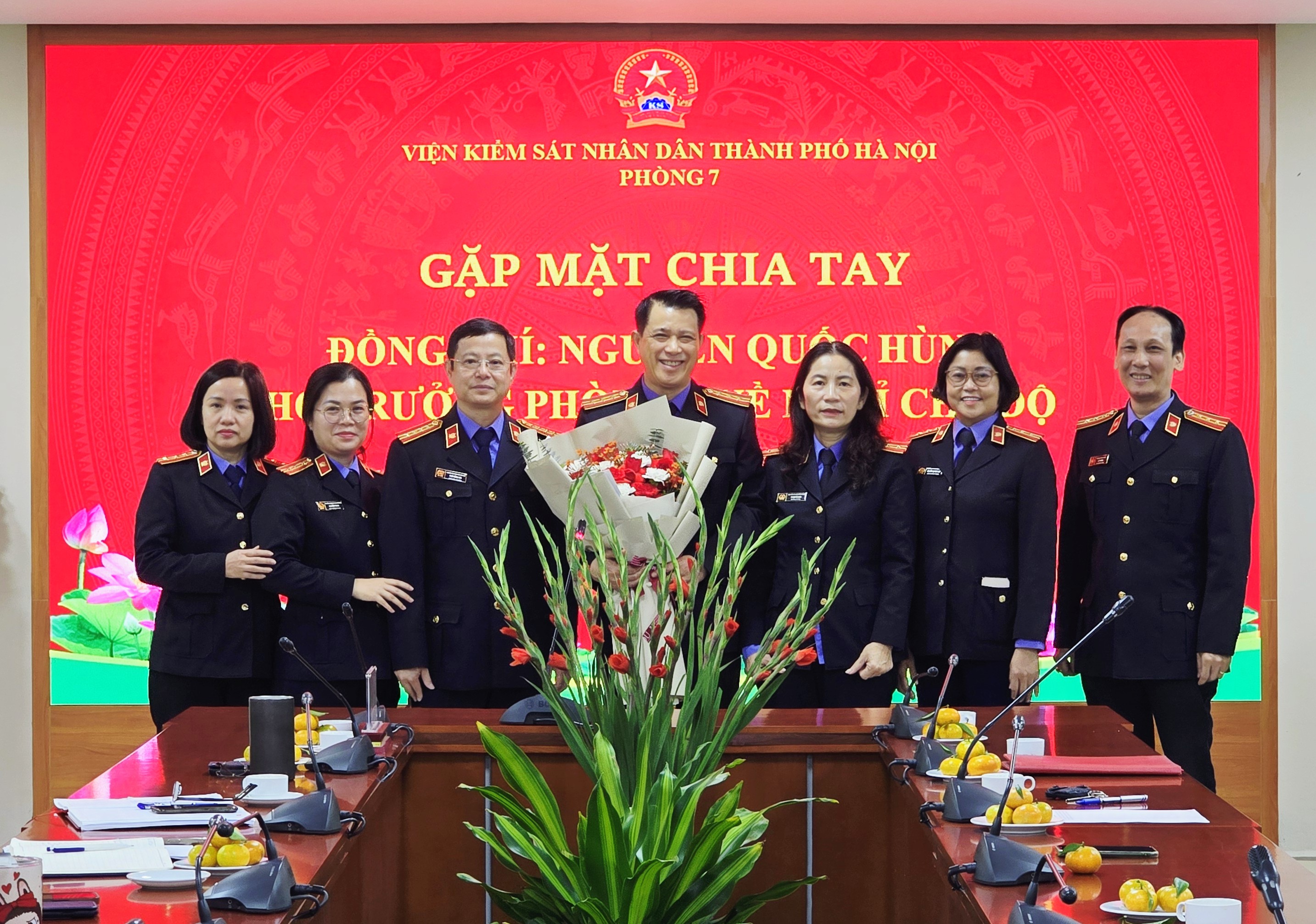 Sáng ngày 26/11/2025, Lãnh đạo Viện KSND thành phố Hà Nội và tập thể Lãnh đạo, Kiểm sát viên và cán bộ Phòng 7 tổ chức buổi gặp mặt, chia tay đồng chí Nguyễn Quốc Hùng – Phó Trưởng phòng, Kiểm sát viên Trung cấp Phòng 7 về nghỉ hưu theo chế độ của Nhà nước từ ngày 01/12/2025.