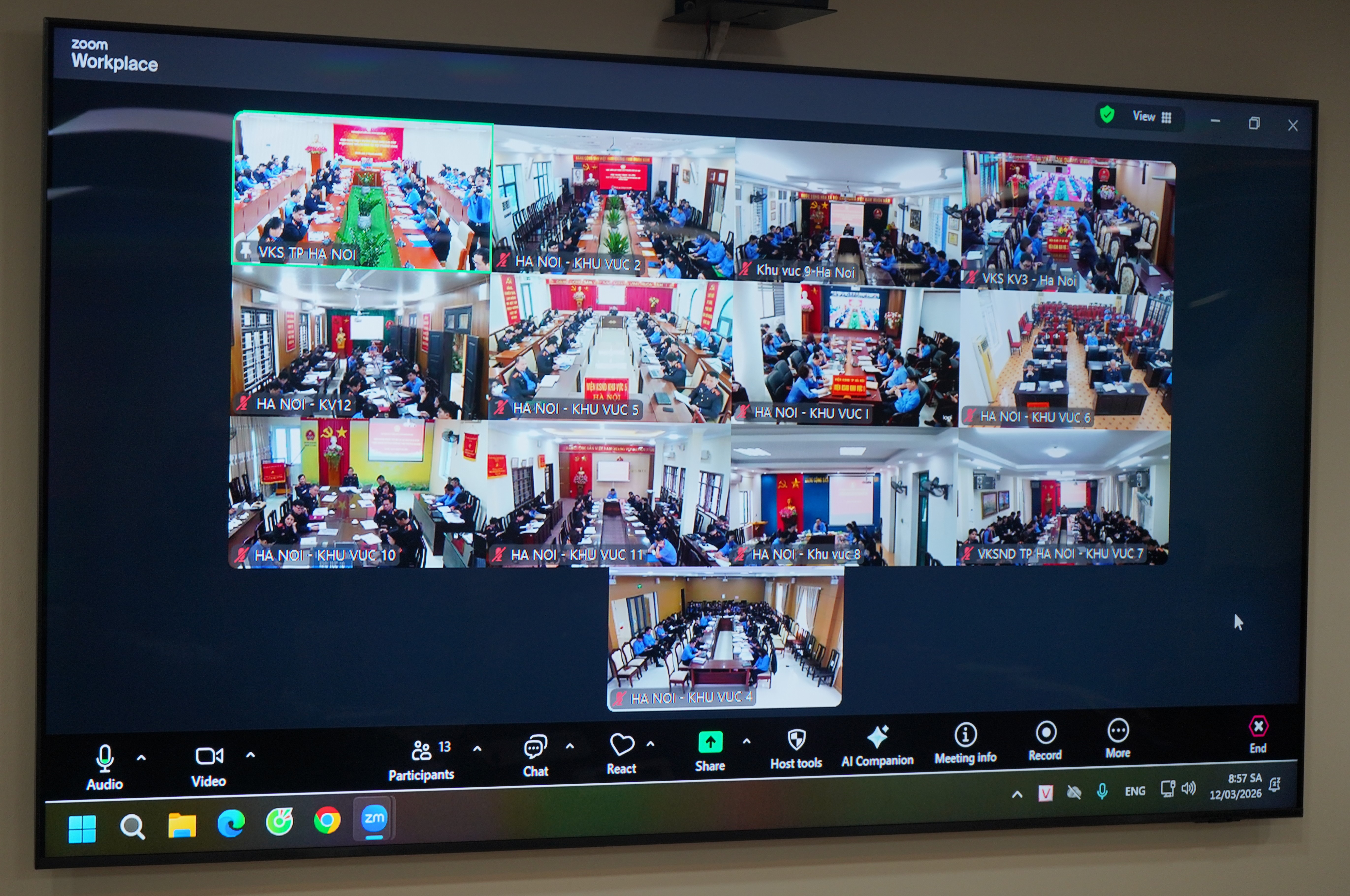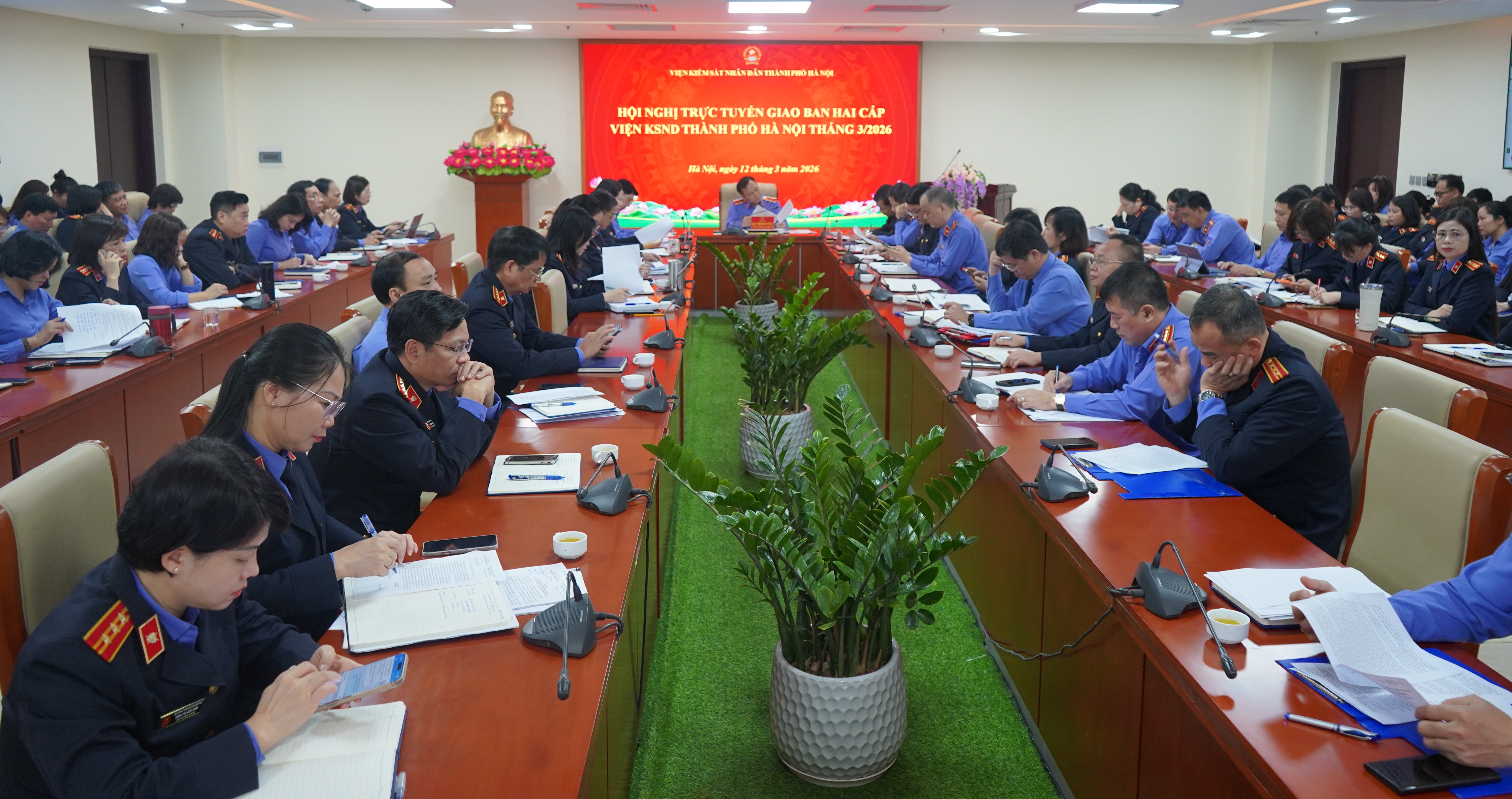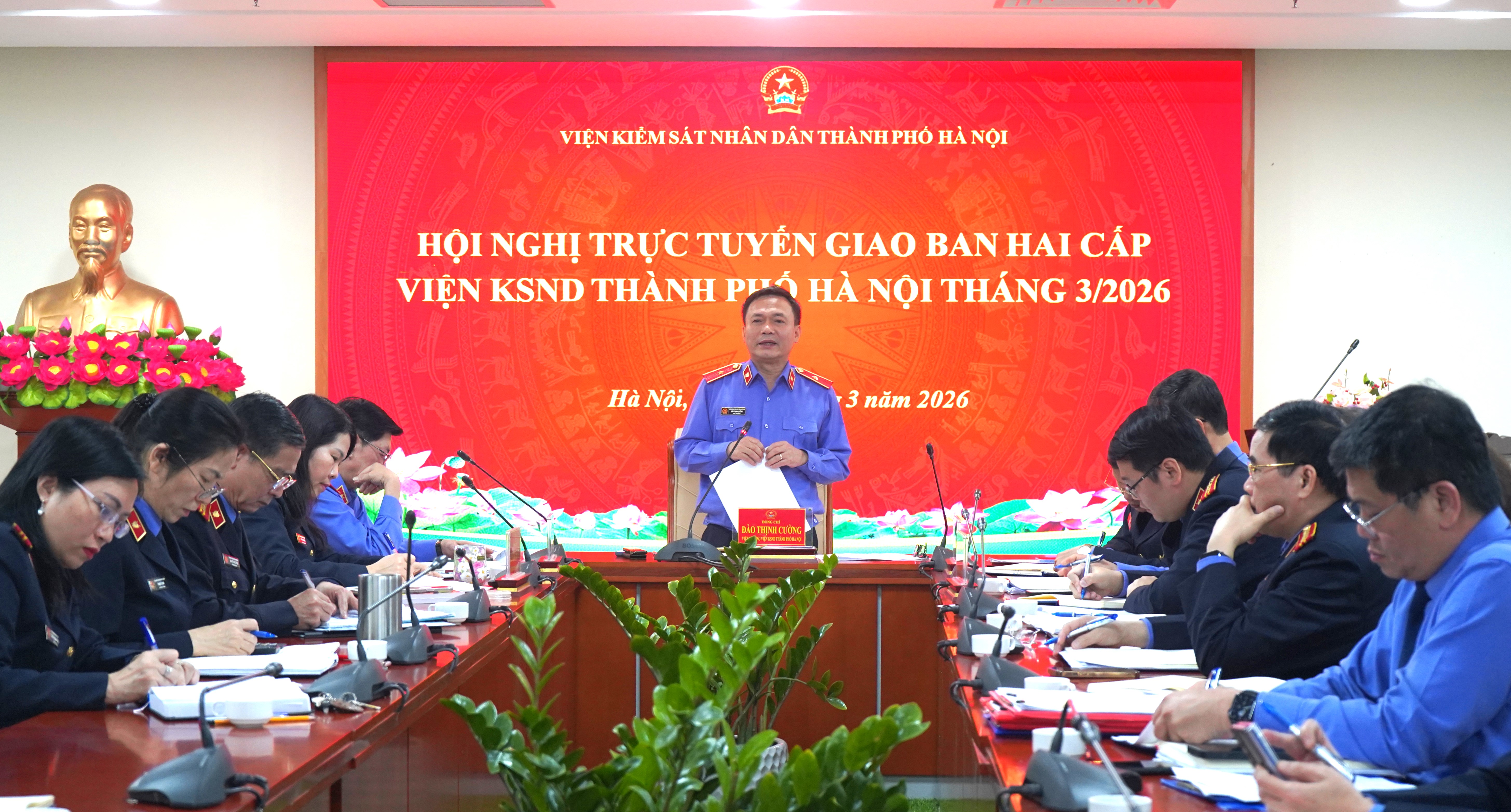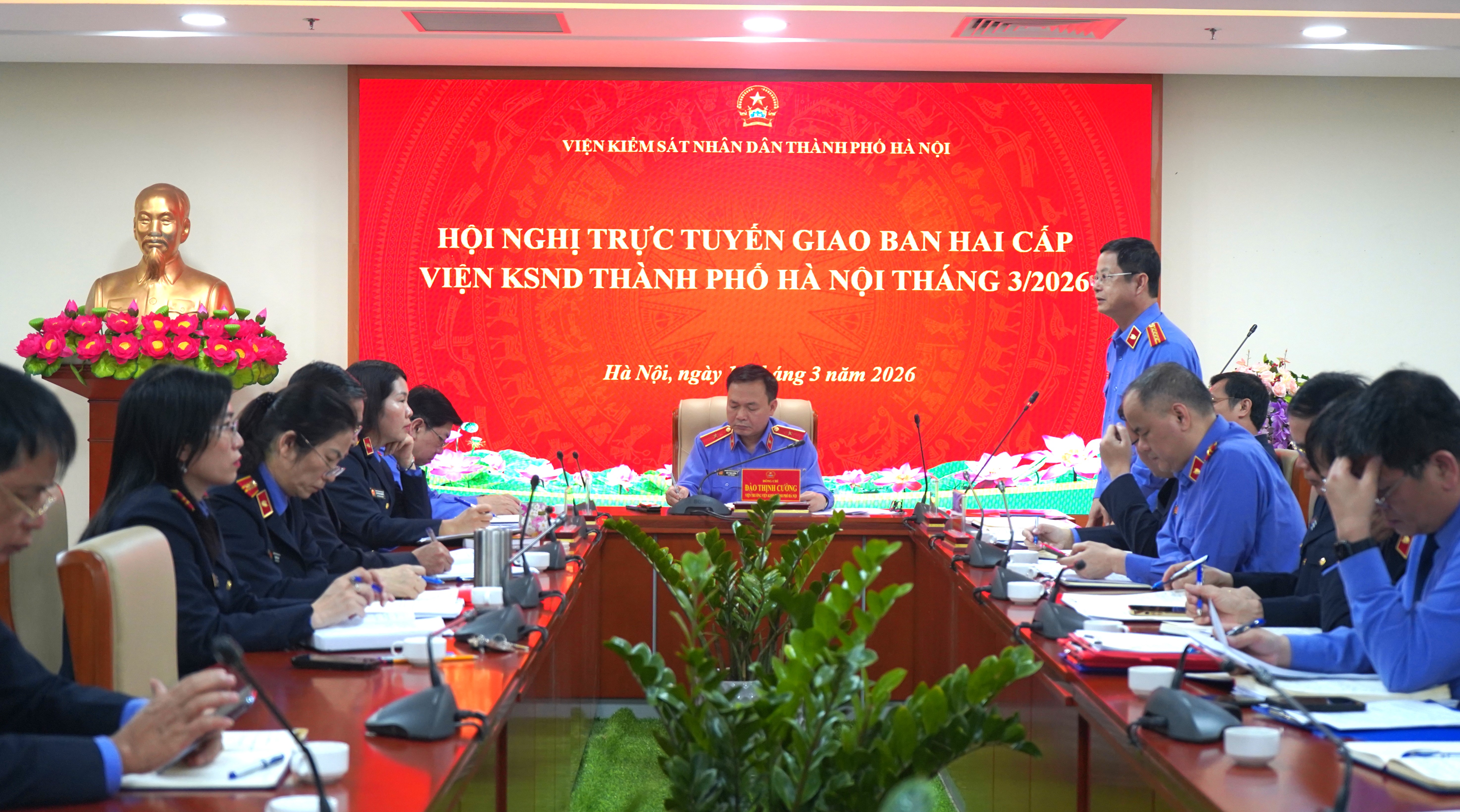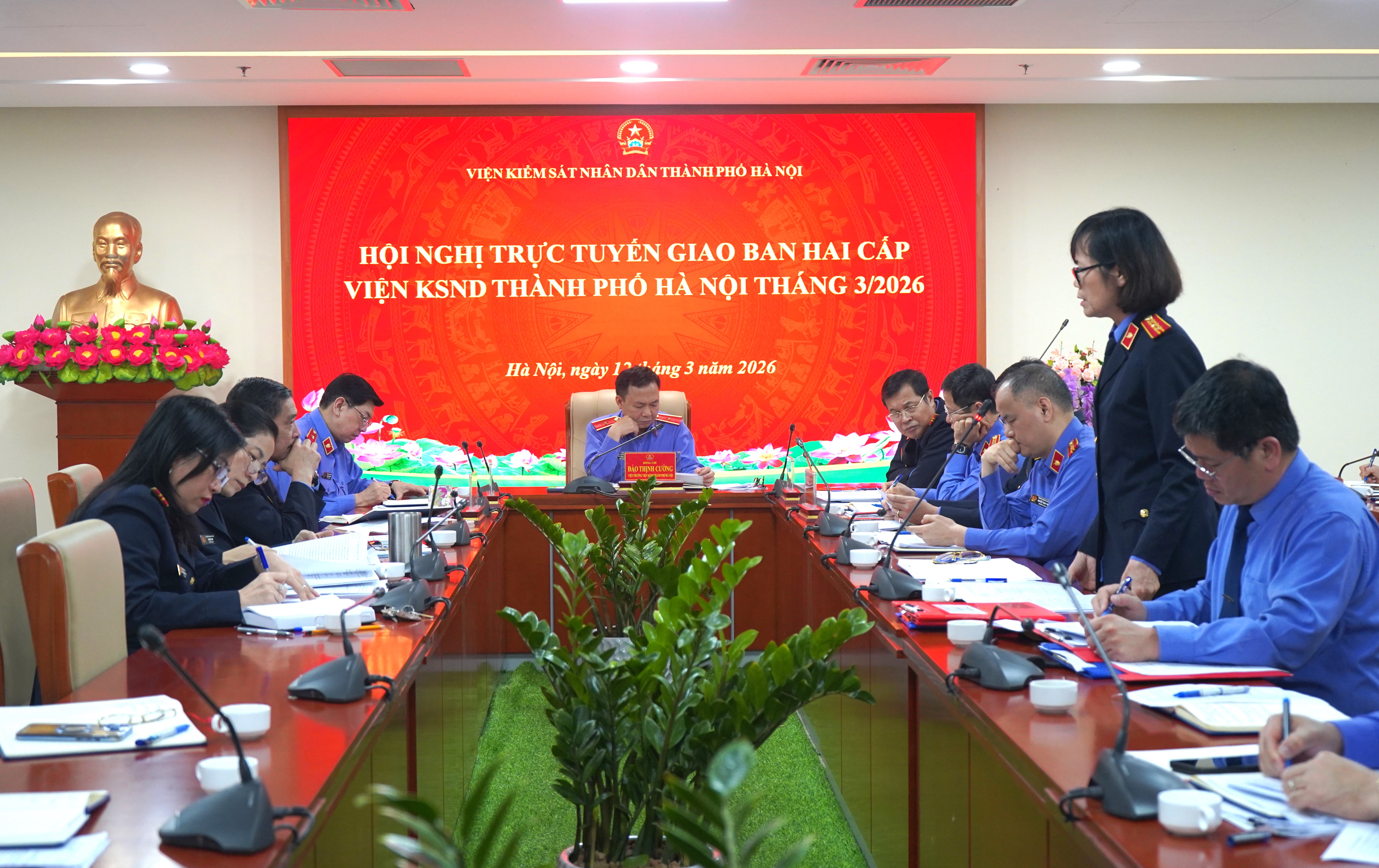 Ngày 12/03/2026, Viện KSND thành phố Hà Nội tổ chức Hội nghị trực tuyến giao ban hai cấp Thành phố tháng 03/2026. Đồng chí Đào Thịnh Cường – Thành ủy viên, Bí thư Đảng ủy, Viện trưởng Viện KSND thành phố Hà Nội dự và chủ trì Hội nghị. Hội nghị được tổ chức bằng hình thức trực tiếp tại Trụ sở Viện KSND thành phố Hà Nội và kết nối trực tuyến đến 12 điểm cầu Viện KSND khu vực.