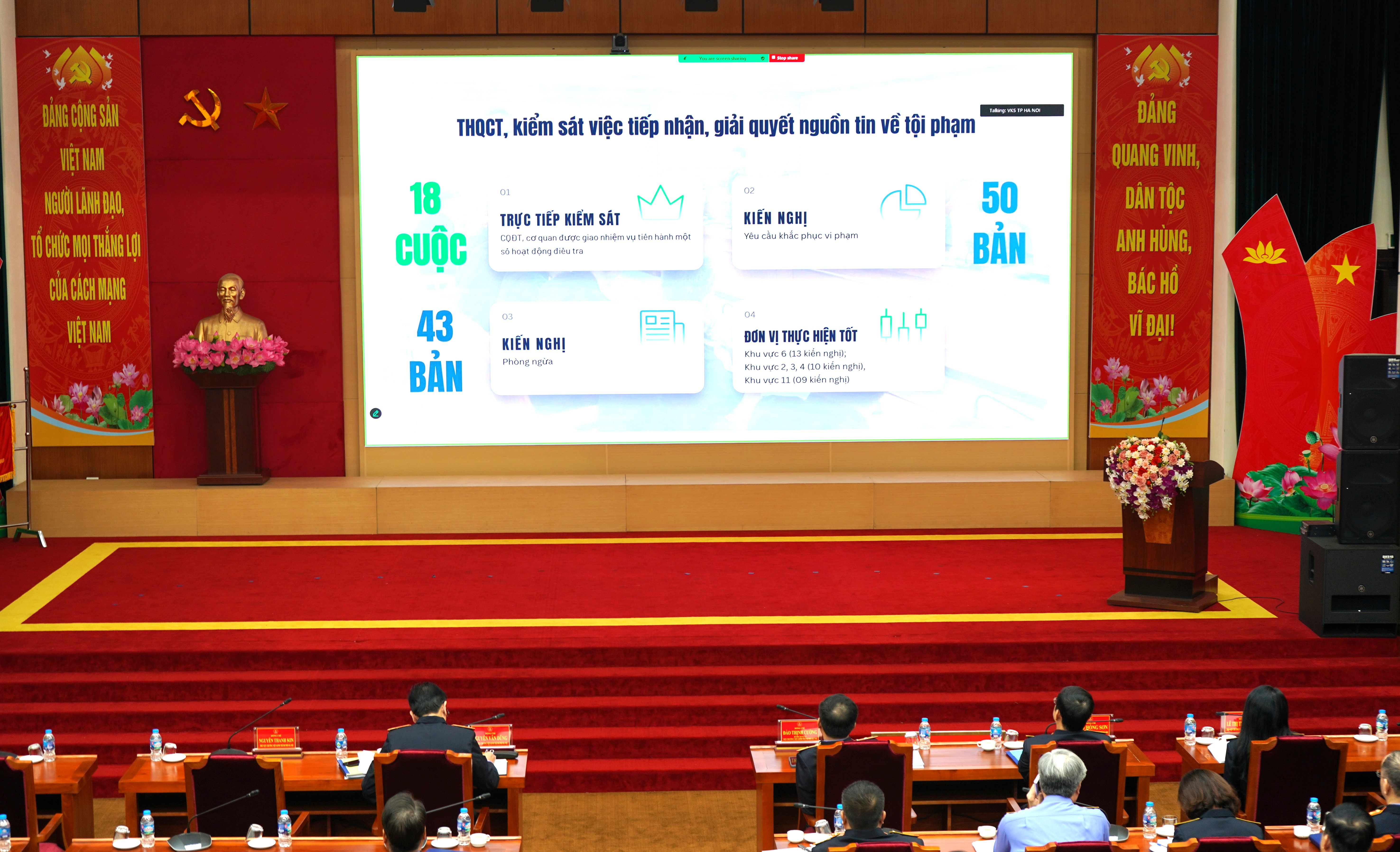 Tại Hội nghị, các đại biểu đã được xem Báo cáo đánh giá kết quả công tác năm 2025 và một số nhiệm vụ trọng tâm năm 2026 của Viện KSND thành phố Hà Nội qua video clip.