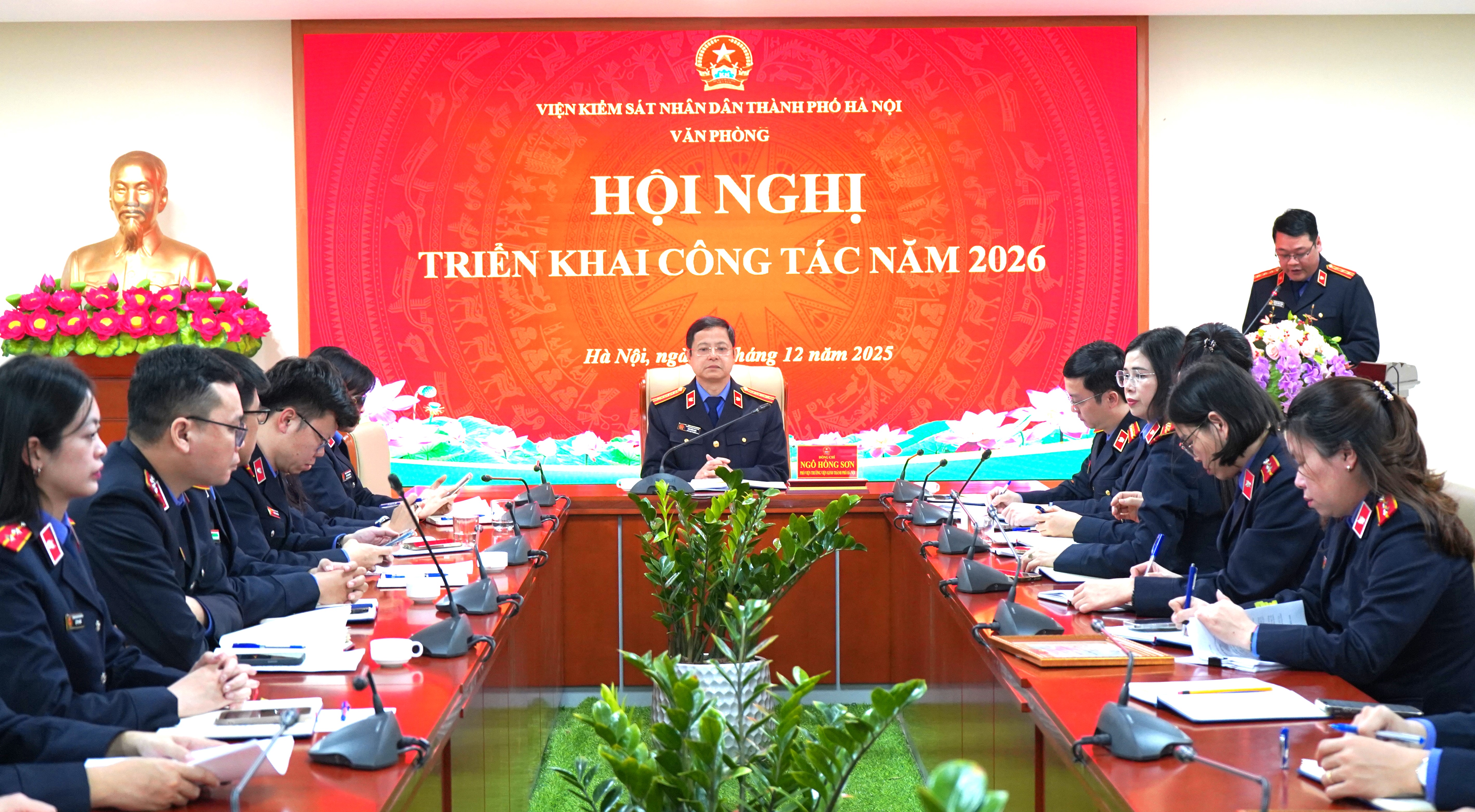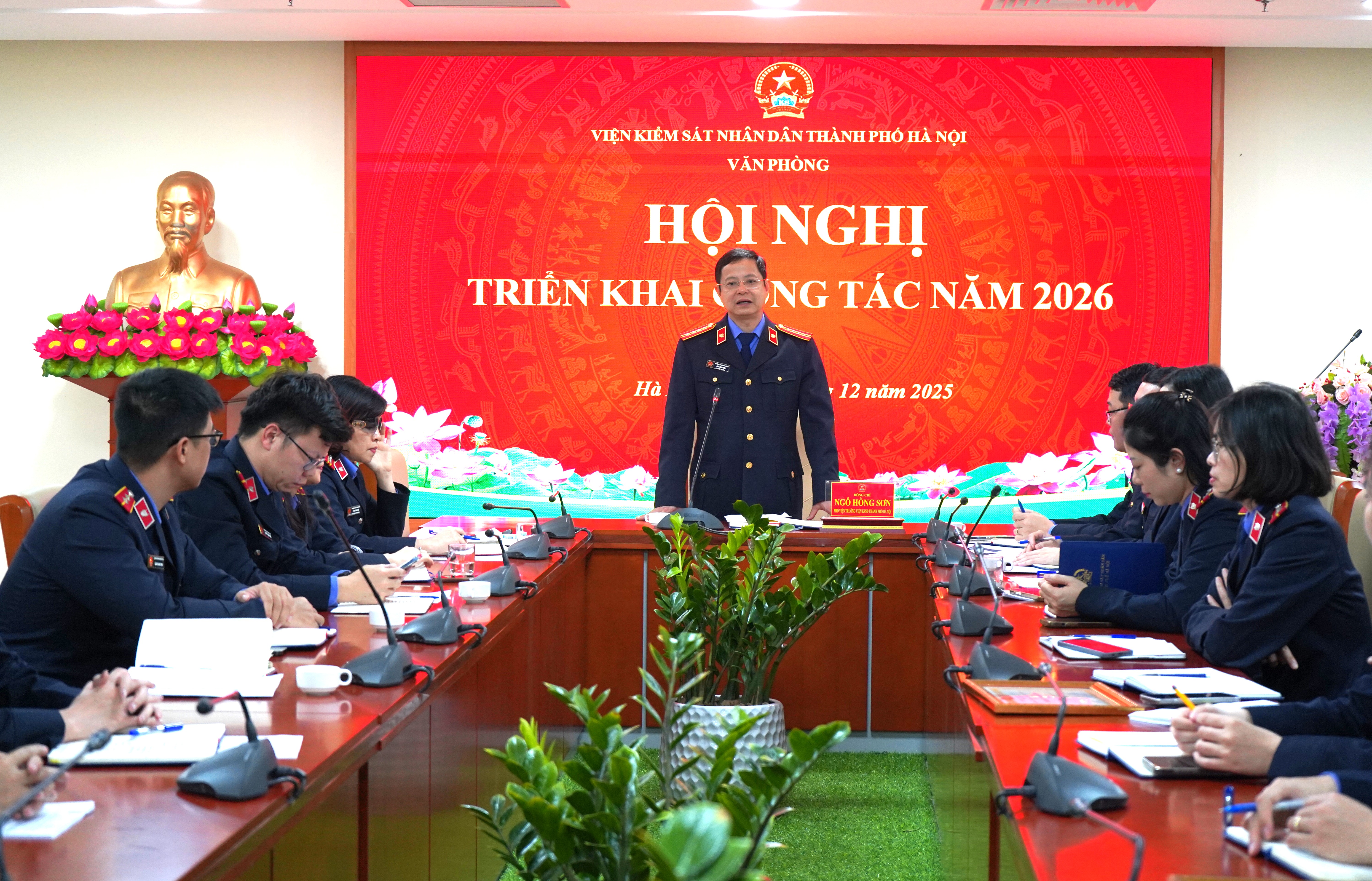 Phát biểu chỉ đạo Hội nghị, đồng chí Ngô Hồng Sơn - Phó Viện trưởng Viện KSND thành phố Hà Nội đã ghi nhận, biểu dương những kết quả của tập thể Lãnh đạo, cán bộ, Kiểm sát viên Văn phòng đã đạt được trong năm qua. Bên cạnh những thành tích đã đạt được, đồng chí cũng chỉ ra một số tồn tại cần khắc phục trong năm tới. Nhân dịp sắp bước sang năm mới, đồng chí Phó Viện trưởng chúc toàn thể Lãnh đạo, cán bộ, công chức Văn phòng mạnh khỏe, bình an; hoàn thành xuất sắc mọi nhiệm vụ năm 2026.