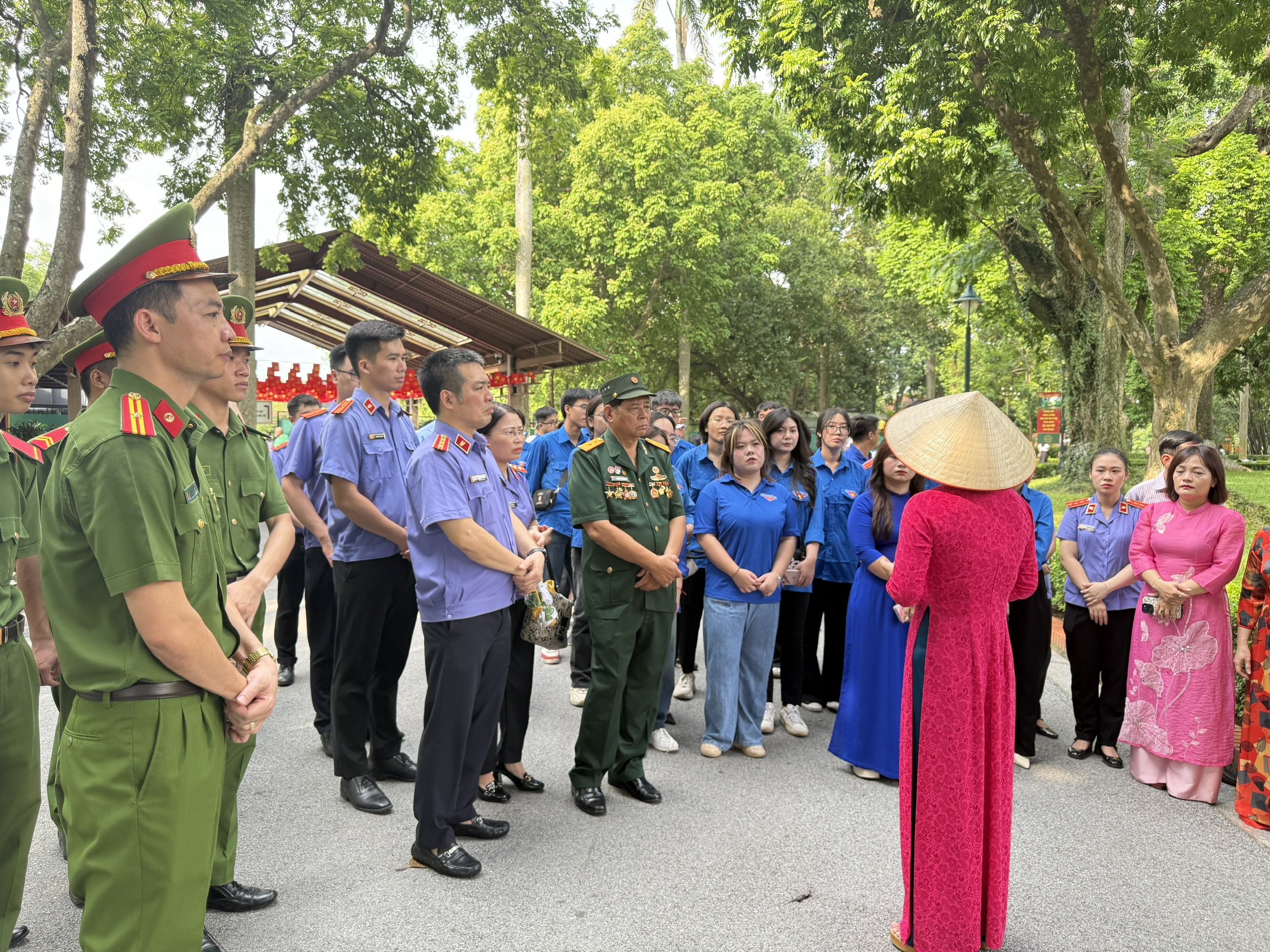 Tiếp nối hành trình, dưới sự điều phối trang nghiêm, đoàn đã thành kính tiến vào Lăng Bác, dâng vòng hoa mang dòng chữ: “Đời đời nhớ ơn Chủ tịch Hồ Chí Minh vĩ đại”. Vòng hoa là biểu tượng của lòng thành kính, biết ơn sâu sắc đối với vị lãnh tụ vĩ đại, người cha già của dân tộc. Trong giây phút trang trọng, toàn thể đoàn đã dành phút mặc niệm tưởng nhớ Chủ tịch Hồ Chí Minh, bày tỏ lòng tri ân sâu sắc và khẳng định quyết tâm học tập, làm theo tư tưởng, đạo đức, phong cách của Bác.