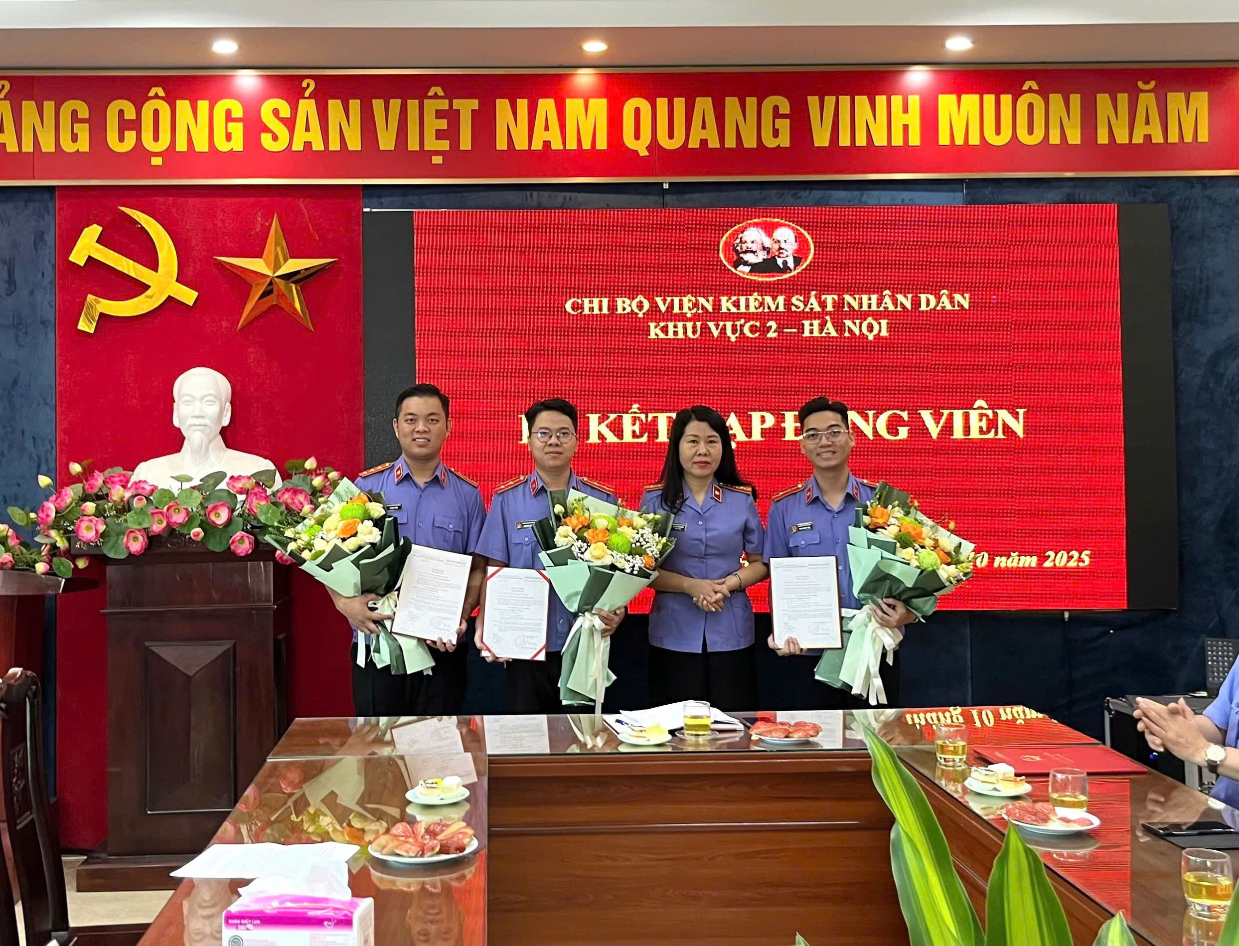 Ngày 15 tháng 10 năm 2025, Chi bộ Viện KSND Khu vực 2, thành phố Hà Nội đã trang trọng tổ chức Lễ kết nạp Đảng viên cho các quần chúng ưu tú Lê Minh Hiếu, Phạm Thành Tuấn và Nguyễn Bá Đức Hải theo quyết định của Ban Thường vụ Đảng ủy Các cơ quan thành phố Hà Nội. Buổi lễ diễn ra trong không khí nghiêm trang, đây là là nhiệm vụ thường xuyên, có ý nghĩa quan trọng trong công tác xây dựng Đảng của Chi bộ.