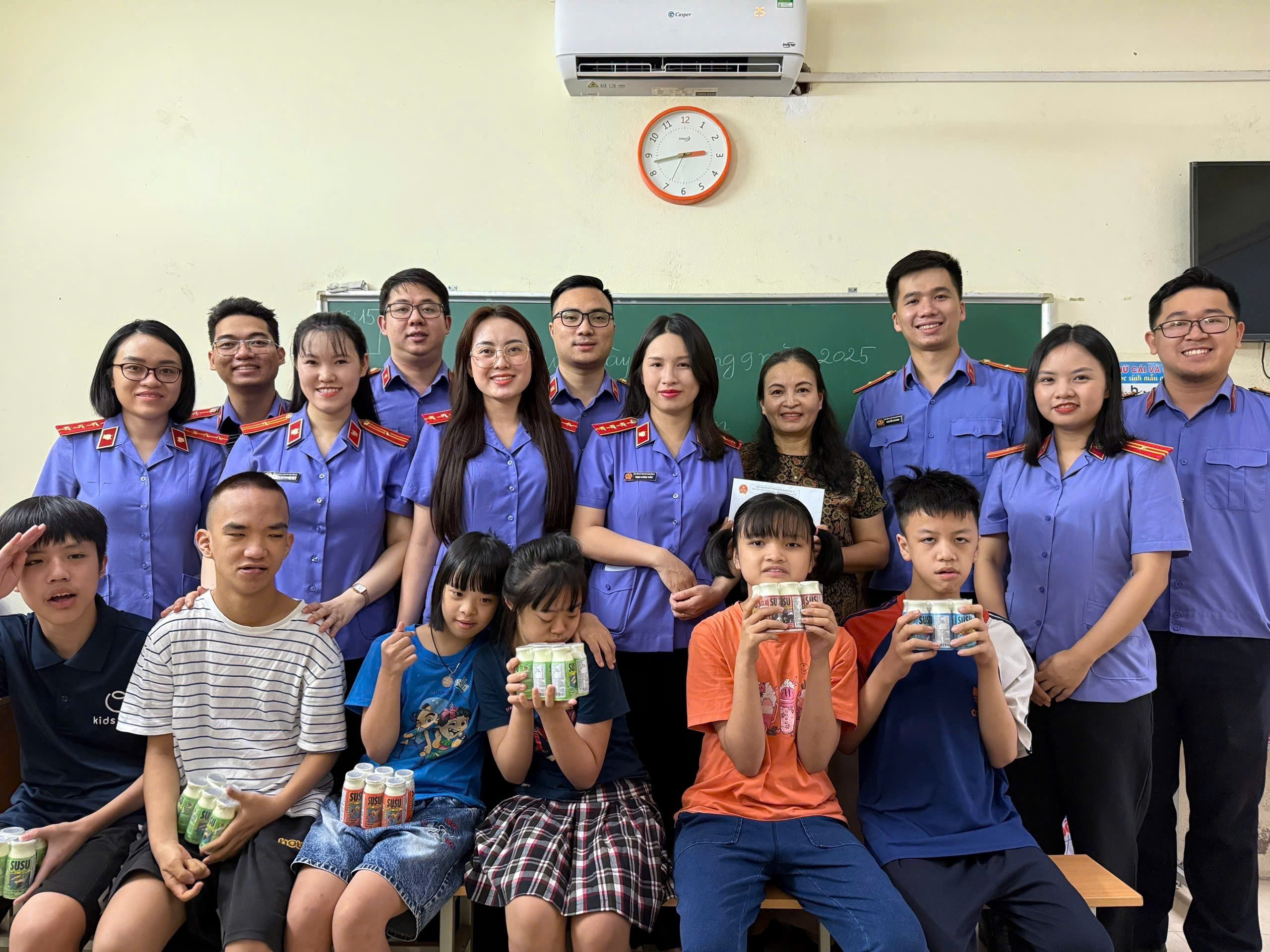 Nhằm lan tỏa tình yêu thương tới những em nhỏ có hoàn cảnh đặc biệt, ngày 22/9/2025, Chi đoàn Viện KSND khu vực 2 đã đến gặp gỡ, thăm hỏi và động viên, trao tận tay bà Chu Thị Lan – Phó Trưởng Làng Hòa Bình số tiền quyên góp được từ các đồng chí cán bộ tại đơn vị để cùng chung tay giúp đỡ, cải thiện phần nào môi trường điều trị, phục hồi cho các em nhỏ. Đồng thời, Chi đoàn còn gửi tặng Làng Hòa Bình một số vật phẩm thiết yếu như: sữa, bánh, giấy vệ sinh, xà phòng,... để hỗ trợ điều kiện sinh hoạt cho các em được đầy đủ hơn.