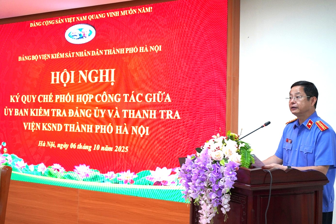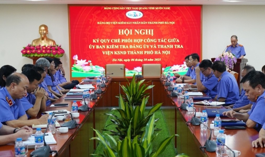 Ngày 06/10/2025 tại trụ sở Viện KSND thành phố Hà Nội, đã diễn ra Hội nghị ký kết Quy chế phối hợp công tác giữa Ủy ban Kiểm tra Đảng ủy và Thanh tra Viện KSND thành phố Hà Nội.