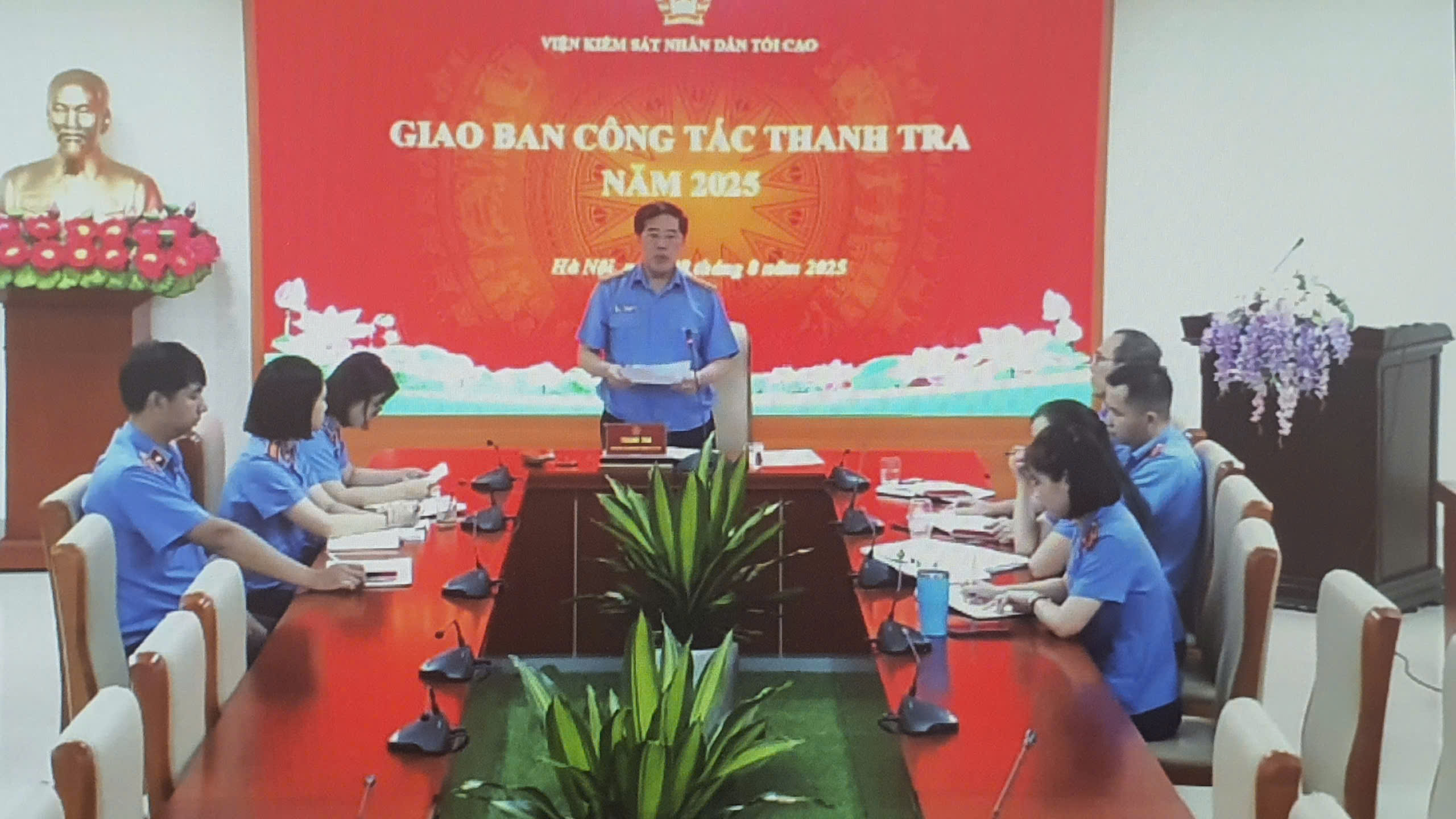 Sáng ngày 08/8/2025, Viện kiểm sát nhân dân tối cao tổ chức Hội nghị trực tuyến giao ban công tác thanh tra ngành Kiểm sát nhân dân. Đồng chí Mai Thị Nam – Chánh Thanh tra tối cao dự và chủ trì Hội nghị.