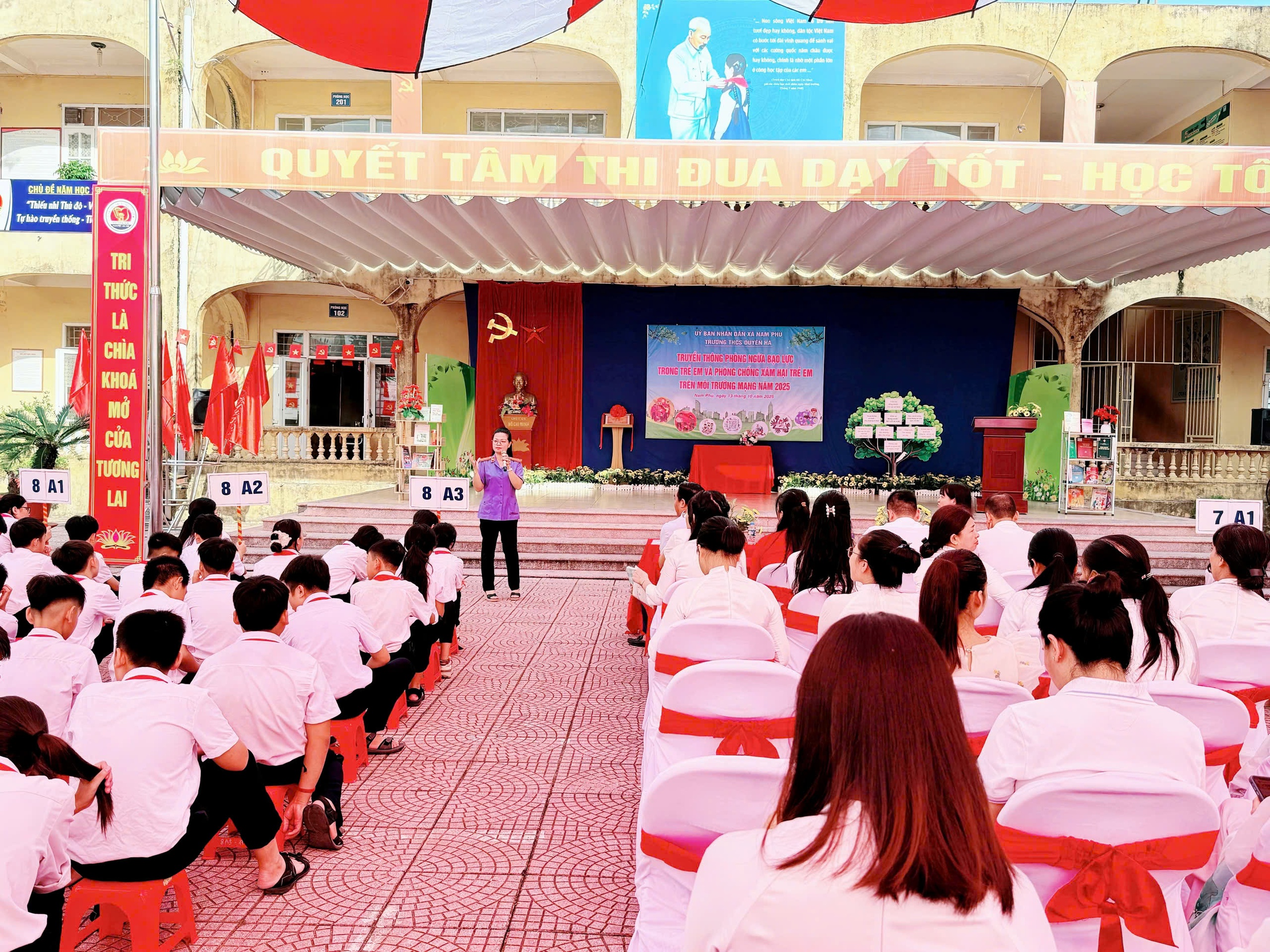Sáng ngày 13/10/2025, tại Trường THCS Duyên Hà, Viện KSND khu vực 11 phối hợp cùng UBND xã Nam Phù tổ chức buổi truyền thông, phổ biến giáo dục pháp luật với chủ đề: “Phòng ngừa bạo lực học đường và phòng, chống xâm hại trẻ em trên môi trường mạng”. Hoạt động nhằm trang bị kiến thức, kỹ năng phòng tránh vi phạm, đồng thời lan tỏa văn hóa pháp luật trong học đường. Buổi truyền thông có sự tham gia của lãnh đạo địa phương, Ban giám hiệu trường, đội ngũ giáo viên và đông đảo học sinh. Báo cáo viên là Kiểm sát viên Mai Thị Phượng thuộc Viện KSND khu vực 11, thành phố Hà Nội, người đảm nhiệm việc dẫn dắt chương trình, truyền tải nội dung pháp luật thiết thực và gắn kết với thực tế học đường hiện nay.