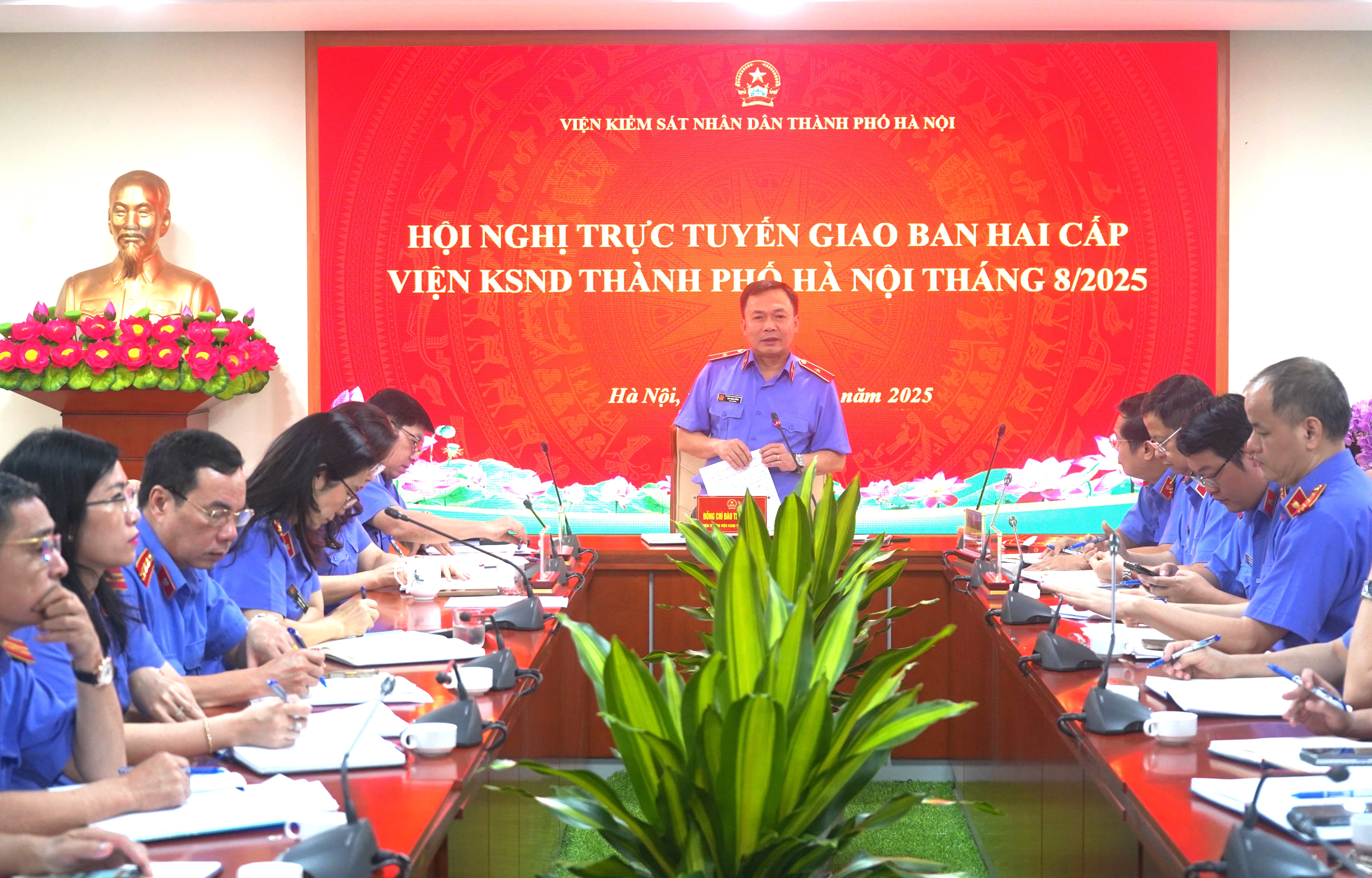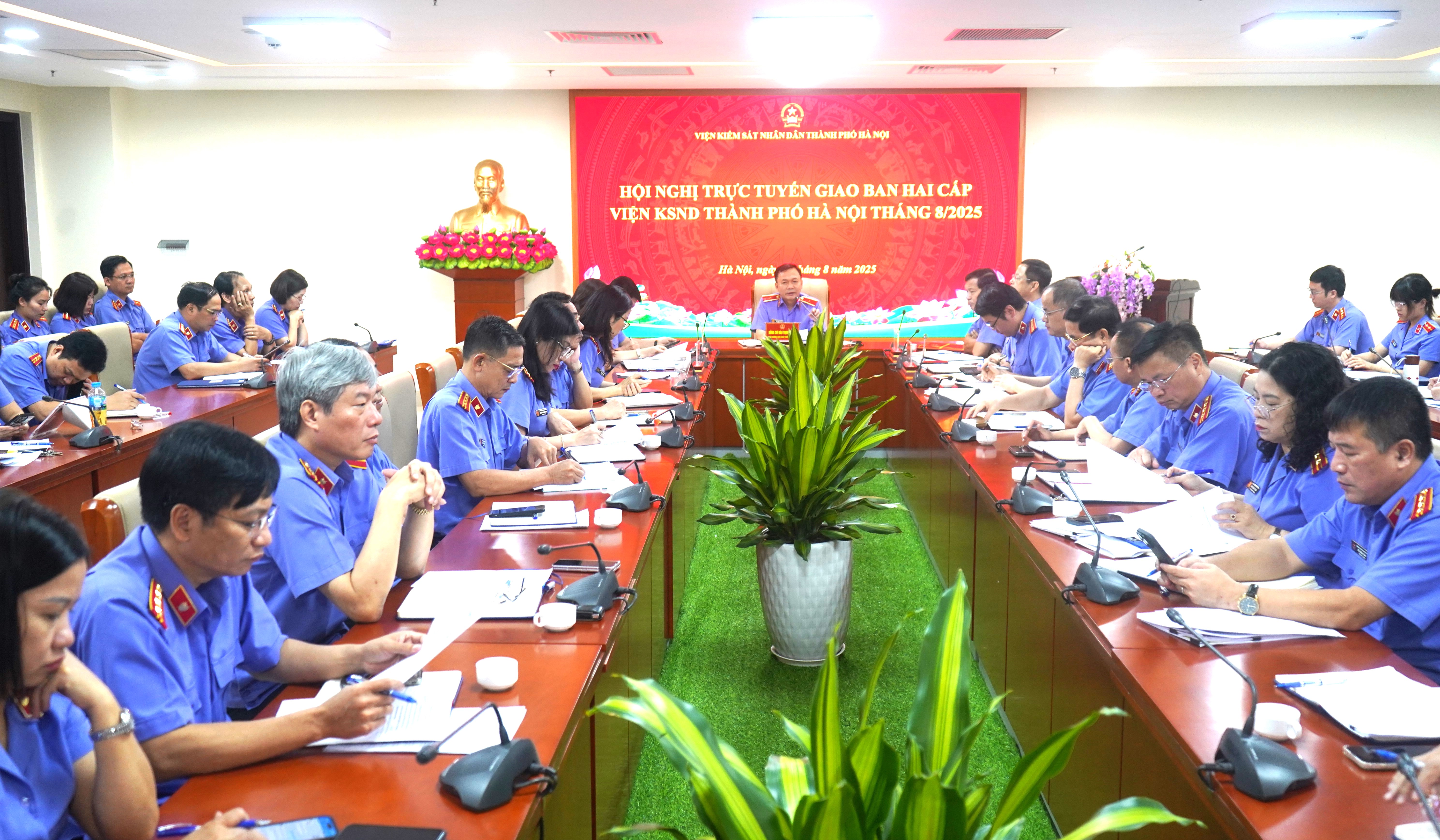 Ngày 06/8/2025, Viện KSND thành phố Hà Nội tổ chức Hội nghị trực tuyến giao ban hai cấp Thành phố tháng 8/2025. Đây là hội nghị giao ban đầu tiên của Viện KSND thành phố Hà Nội sau khi sắp xếp, tổ chức lại bộ máy. Đồng chí Đào Thịnh Cường - Bí thư Đảng ủy, Viện trưởng Viện KSND Thành phố dự và chủ trì Hội nghị.