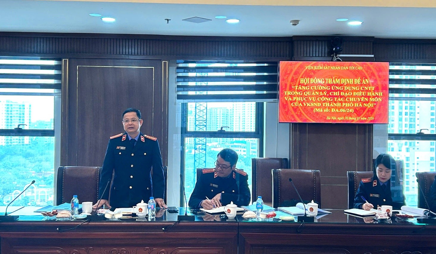 Vừa qua, tại trụ sở Viện KSND tối cao, Ban Chủ nhiệm đề án nghiên cứu khoa học VKSND thành phố Hà Nội đã bảo vệ thành công Đề án khoa học cấp Bộ “Tăng cường ứng dụng công nghệ thông tin trong quản lý, chỉ đạo điều hành và phục vụ công tác chuyên môn của Viện kiểm sát nhân dân thành phố Hà Nội”. Đề án do đồng chí Ngô Hồng Sơn – Phó Viện trưởng VKSND thành phố Hà Nội làm Chủ nhiệm, thành viên là các đồng chí trong CLB Kiểm sát viên trẻ VKSND thành phố Hà Nội. Đề án được triển khai thực hiện trong thời gian 02 năm (2024–2025).