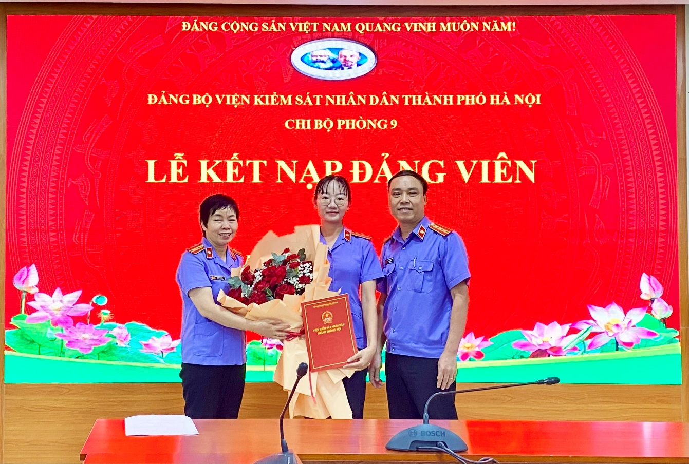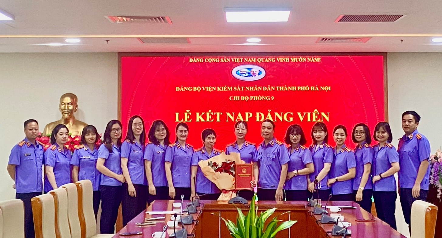 Trong không khí thi đua sôi nổi của toàn Đảng, toàn dân đang ra sức thực hiện thắng lợi Nghị quyết Đại hội XIII của Đảng và hướng tới Đại hội Đại biểu toàn quốc lần thứ XIV của Đảng, sáng ngày 10/10/2025, Chi bộ Phòng 9 Viện KSND thành phố Hà Nội đã long trọng tổ chức Lễ kết nạp Đảng viên cho quần chúng ưu tú Nguyễn Thu Hiền. Đây là sự kiện có ý nghĩa chính trị quan trọng, đánh dấu bước trưởng thành mới của đồng chí Nguyễn Thu Hiền và thể hiện sự quan tâm, chú trọng của Chi bộ đối với công tác phát triển đảng viên.