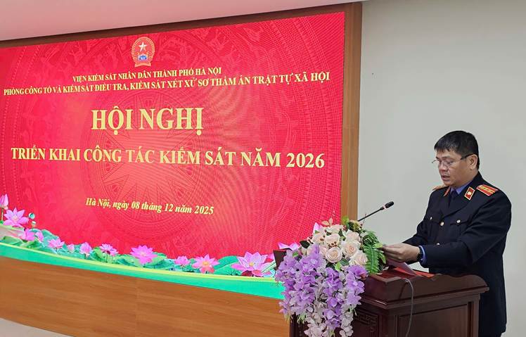 Với mục tiêu giữ vững và phát huy kết quả đã đạt được, ngày 08/12/2025, Phòng 2 Viện KSND thành phố Hà Nội tổ chức hội nghị triển khai công tác kiểm sát năm 2026 nhằm đề ra phương hướng, triển khai thực hiện đầy đủ và hiệu quả các mục tiêu, giải pháp cơ bản được xác định trong Chỉ thị công tác năm 2026 của Viện trưởng Viện KSND tối cao với phương châm: “Đoàn kết, đổi mới - Bản lĩnh, kỷ cương -Chuyên nghiệp, hiện đại”, đồng thời nhằm thực hiện hiệu quả các Nghị quyết, Chương trình công tác của Thành ủy, Hội đồng nhân dân Thành phố với chủ đề: “Kỷ cương, trách nhiệm, hành động, sáng tạo, phát triển”; chủ động tổ chức triển khai thực hiện đảm bảo đúng tiến độ và chất lượng các nhiệm vụ đã được giao; nâng cao hơn nữa chất lượng công tác thực hành quyền công tố và kiểm sát hoạt động tư pháp, đảm bảo không làm oan người vô tội, không bỏ lọt tội phạm, phấn đấu đạt và vượt các chỉ tiêu, nhiệm vụ công tác do Quốc hội, Viện KSND tối cao đã đề ra và các nhiệm vụ của Thành ủy, Hội đồng nhân dân Thành phố giao; góp phần giữ vững an ninh chính trị, trật tự an toàn xã hội trên địa bàn Thủ đô Hà Nội. Đồng thời xác định khâu đột phá là: “Tiếp tục thực hiện đồng bộ các giải pháp nâng cao chất lượng công tác thực hành quyền công tố, kiểm sát điều tra, kiểm sát xét xử các vụ án hình sự nhằm bảo đảm chống oan, sai, bỏ lọt tội phạm và hạn chế án trả hồ sơ để điều tra bổ sung. Thường xuyên rà soát, giải quyết dứt điểm các vụ, việc tạm đình chỉ, không để tình trạng tạm đình chỉ kéo dài mà không có hoạt động kiểm sát dẫn đến hết thời hiệu truy cứu trách nhiệm hình sự”.