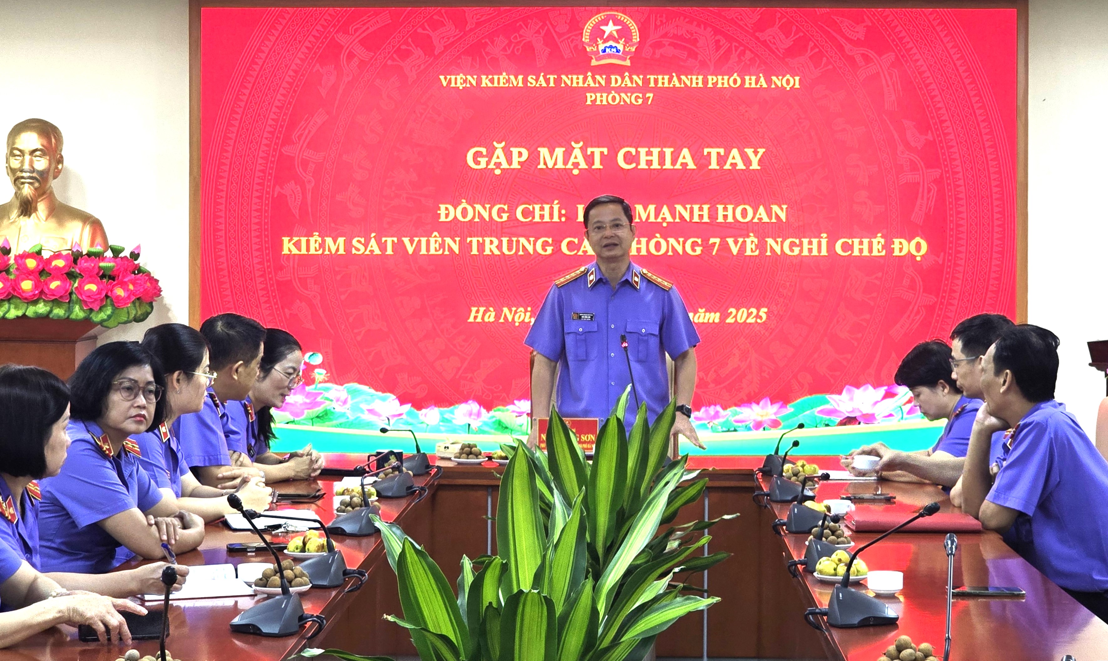 Sáng ngày 25/9/2025, Lãnh đạo Viện KSND thành phố Hà Nội và tập thể Lãnh đạo, Kiểm sát viên và cán bộ Phòng 7 tổ chức buổi gặp mặt, chia tay đồng chí Lưu Mạnh Hoan - Kiểm sát viên Trung cấp Phòng 7 về nghỉ hưu theo chế độ của Nhà nước từ ngày 01/10/2025.