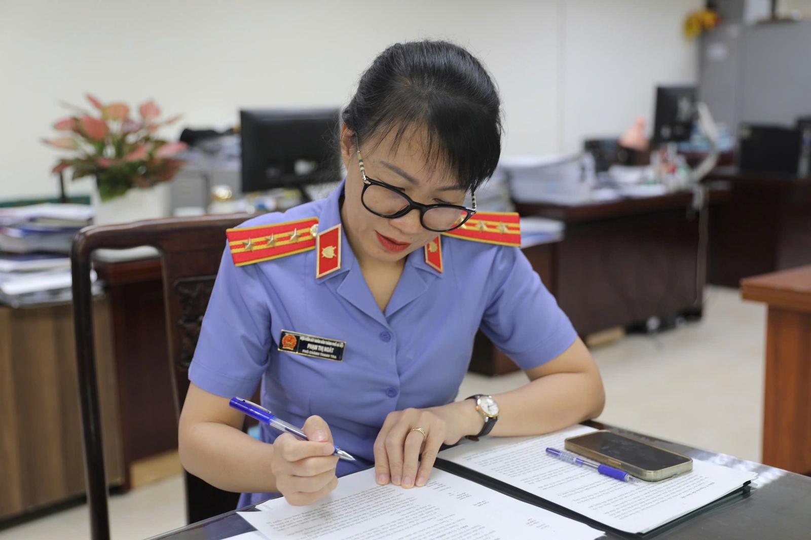 Phó Chánh Thanh tra Phạm Thị Ngát đam mê với công tác thanh tra. Ảnh: Kim Anh