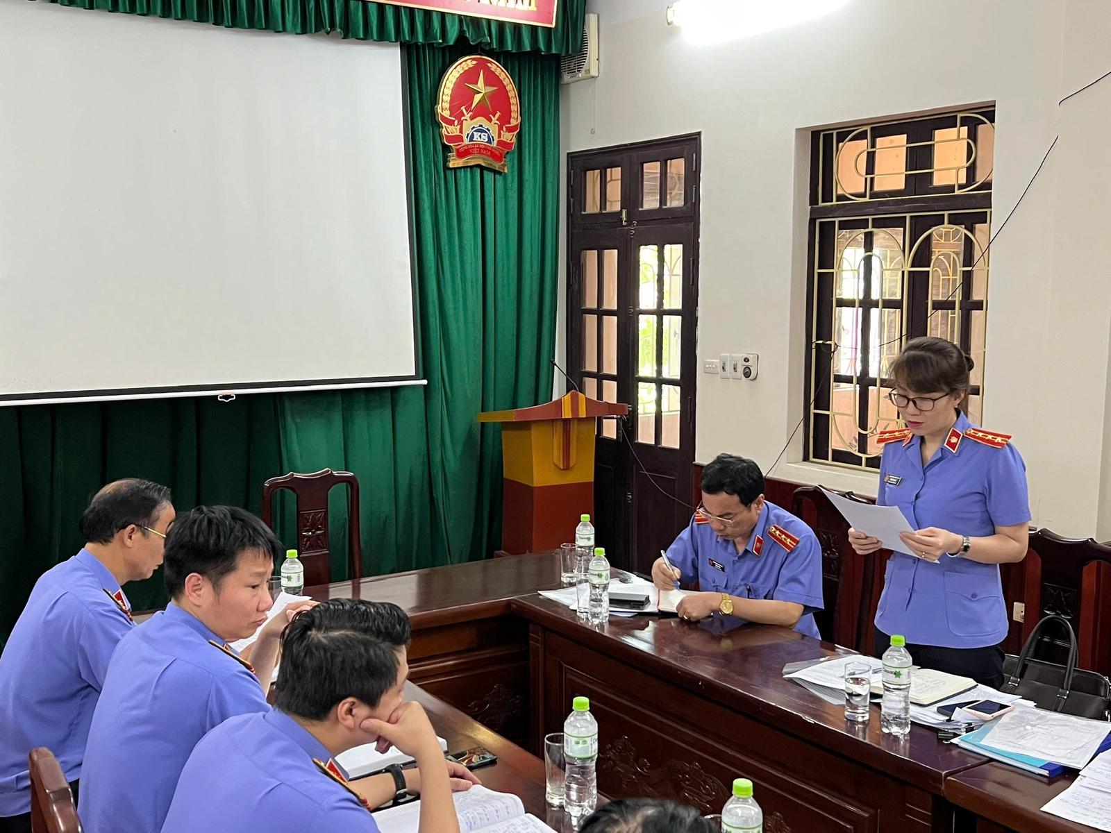 Phó Chánh Thanh tra Phạm Thị Ngát công bố quyết định thanh tra tại VKSND huyện Phú Xuyên (cũ), Hà Nội.