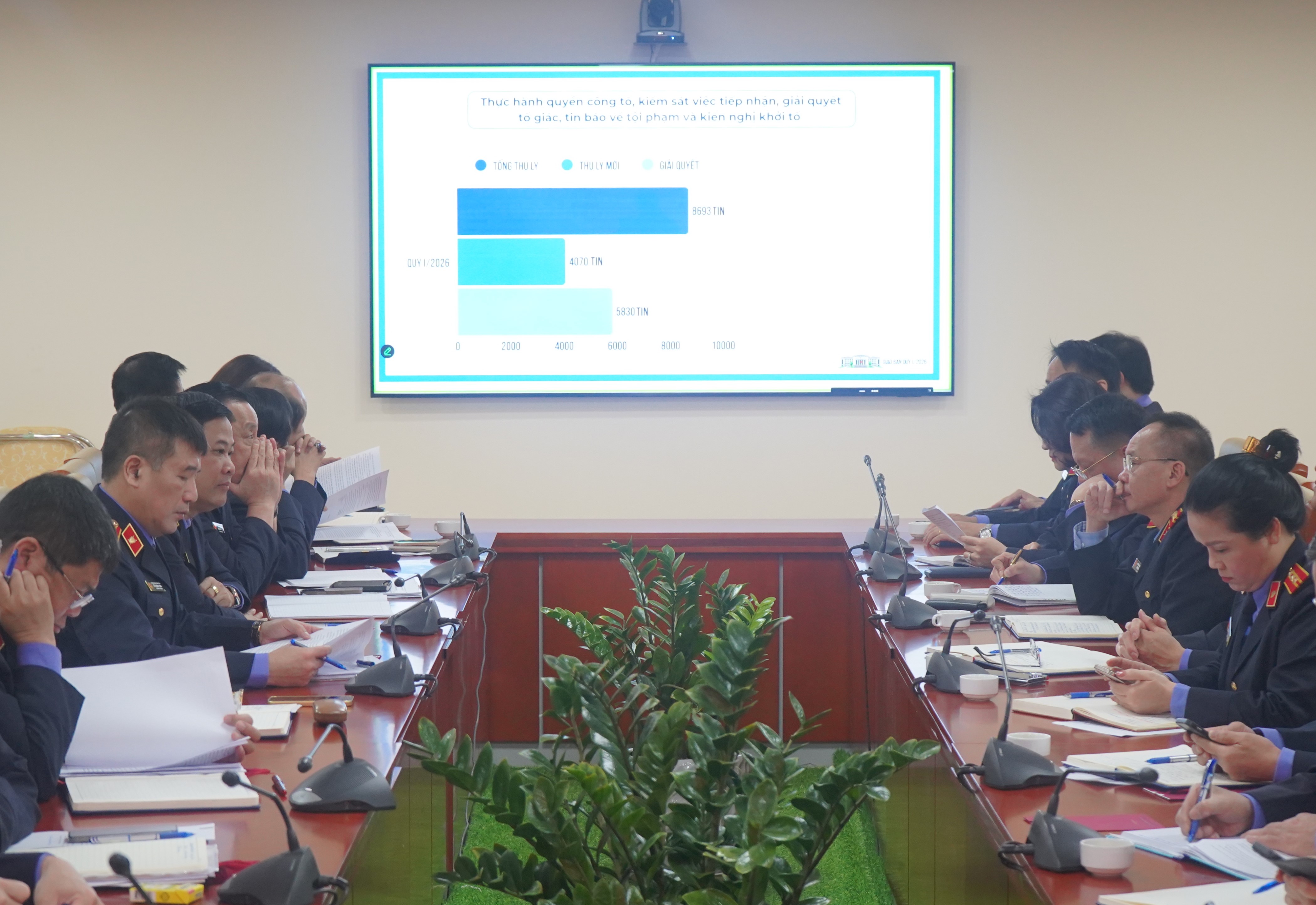 Theo Báo cáo, trong quý I năm 2026, VKSND hai cấp Thành phố đã thụ lý 8.693 nguồn tin tội phạm, kiểm sát điều tra 7.408 vụ/10.062 bị can, đã truy tố 2.204 vụ/4.424 bị can; thụ lý xét xử 2.829 vụ/5.914 bị cáo theo thủ tục sơ thẩm, 190 vụ/260 bị cáo theo thủ tục phúc thẩm. Viện KSND hai cấp Thành phố kiểm sát 3.075 người bị tạm giữ; 11.243 người bị tạm giam; kiểm sát việc giải quyết 21.421 vụ, việc về dân sự, hành chính, kinh doanh, thương mại, lao động; kiểm sát 40.222 việc thi hành án; tiếp 432 lượt công dân; tiếp nhận, kiểm sát giải quyết 2.422 đơn thiếu nại, tố cáo...Mặc dù tình hình tội phạm, vi phạm pháp luật, các tranh chấp dân sự tiếp tục có diễn biến phức tạp, nhưng nhờ có sự quan tâm chỉ đạo của Thường trực Thành ủy, sự phối hợp kịp thời của các cơ quan, ban ngành địa phương, đặc biệt là sự quan tâm, chỉ đạo sát sao của lãnh đạo Viện KSND tối cao, sự đoàn kết thống nhất trong chỉ đạo thực hiện nhiệm vụ của lãnh đạo Viện kiểm sát hai cấp Thành phố nên công tác công tố, kiểm sát các hoạt động tư pháp đạt được nhiều kết quả tích cực. Đến nay Viện KSND hai cấp Thành phố đã bám sát tinh thần chỉ đạo, tiếp tục duy trì phối hợp với các cơ quan tố tụng và các cơ quan có liên quan để thực hiện tốt chức năng, nhiệm vụ được giao, góp phần thực hiện tốt công tác phòng chống tội phạm, bảo đảm an ninh trật tự trên địa bàn Thành phố.
