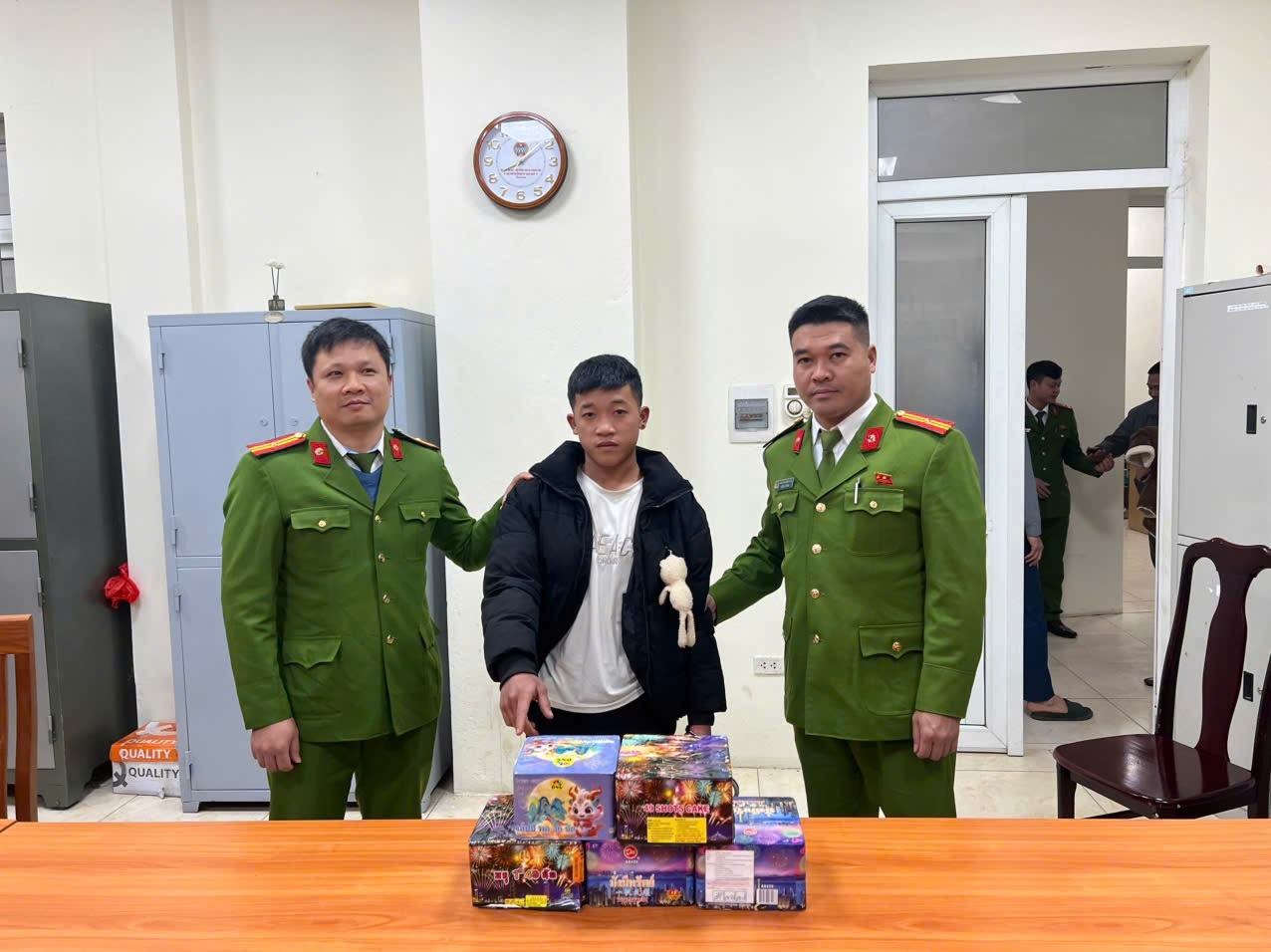 Hồi 20 giờ ngày 12/01/2026, trong quá trình tuần tra đảm bảo an ninh trật tự tại khu vực đường cổng phụ Trường Đại học Quốc gia Hà Nội, thuộc địa phận thôn 3, xã Hòa Lạc, thành phố Hà Nội, tổ công tác của Công an xã phát hiện Lê Quang Thực, sinh ngày 20/9/2007, trú tại xóm Bông 2, xã Long Cốc, tỉnh Phú Thọ đang đi bộ và xách theo một thùng cát tông bằng. Nhận thấy đối tượng có biểu hiện bất thường, tổ công tác đã tiến hành kiểm tra hành chính đối với Thực. Qua kiểm tra, tổ công tác đã phát hiện bên trong thùng cát tông có 05 khối hình hộp, nghi là pháo hoa nổ, với tổng trọng lượng 7,7 kg. Thực khai nhận: Số pháo nổ trên là do Thực mua của một đối tượng thông qua mạng xã hội Zalo với giá là 800.000đồng/01 hộp pháo hoa nổ loại 49 quả và 500.000đồng/01 hộp pháo hoa nổ loại 36 quả để đem đi bán kiếm lời. Tuy nhiên, Thực chưa kịp bán thì bị Cơ quan Công an kiểm tra và bắt giữ cùng toàn bộ tang vật.