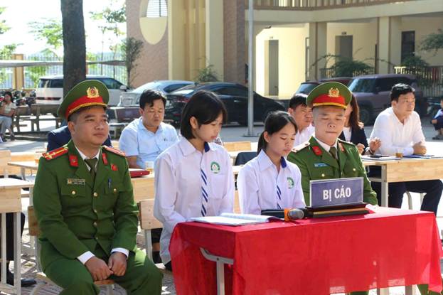 Trong suốt quá trình mô phỏng xét xử, học sinh được chứng kiến đầy đủ trình tự thủ tục tố tụng: khai mạc phiên tòa, công bố cáo trạng, phần xét hỏi, phần tranh luận, và tuyên án. Các tình tiết, lời khai, chứng cứ được thể hiện một cách rõ ràng, giúp học sinh hiểu rằng chỉ một hành vi sai lầm nhỏ cũng có thể dẫn đến hậu quả pháp lý rất lớn. Một trong những mục tiêu quan trọng của phiên tòa giả định là nâng cao nhận thức của học sinh về hiểm họa ma túy – đặc biệt trong bối cảnh tình trạng các đối tượng xấu lợi dụng mạng xã hội, game online, và khu vực quanh trường học để lôi kéo học sinh sử dụng thuốc lá điện tử, ma túy trá hình ngày càng phổ biến.