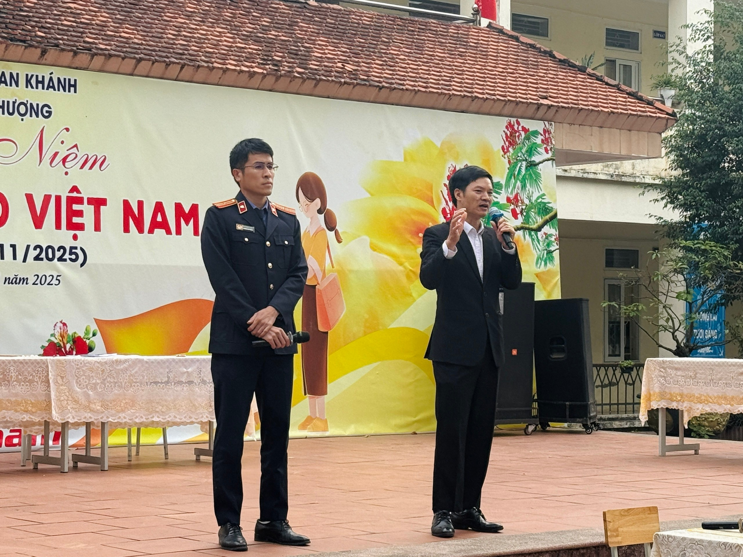Kiểm sát viên Viện KSND khu vực 8 phối hợp chia sẻ kiến thức pháp luật đến các em học sinh