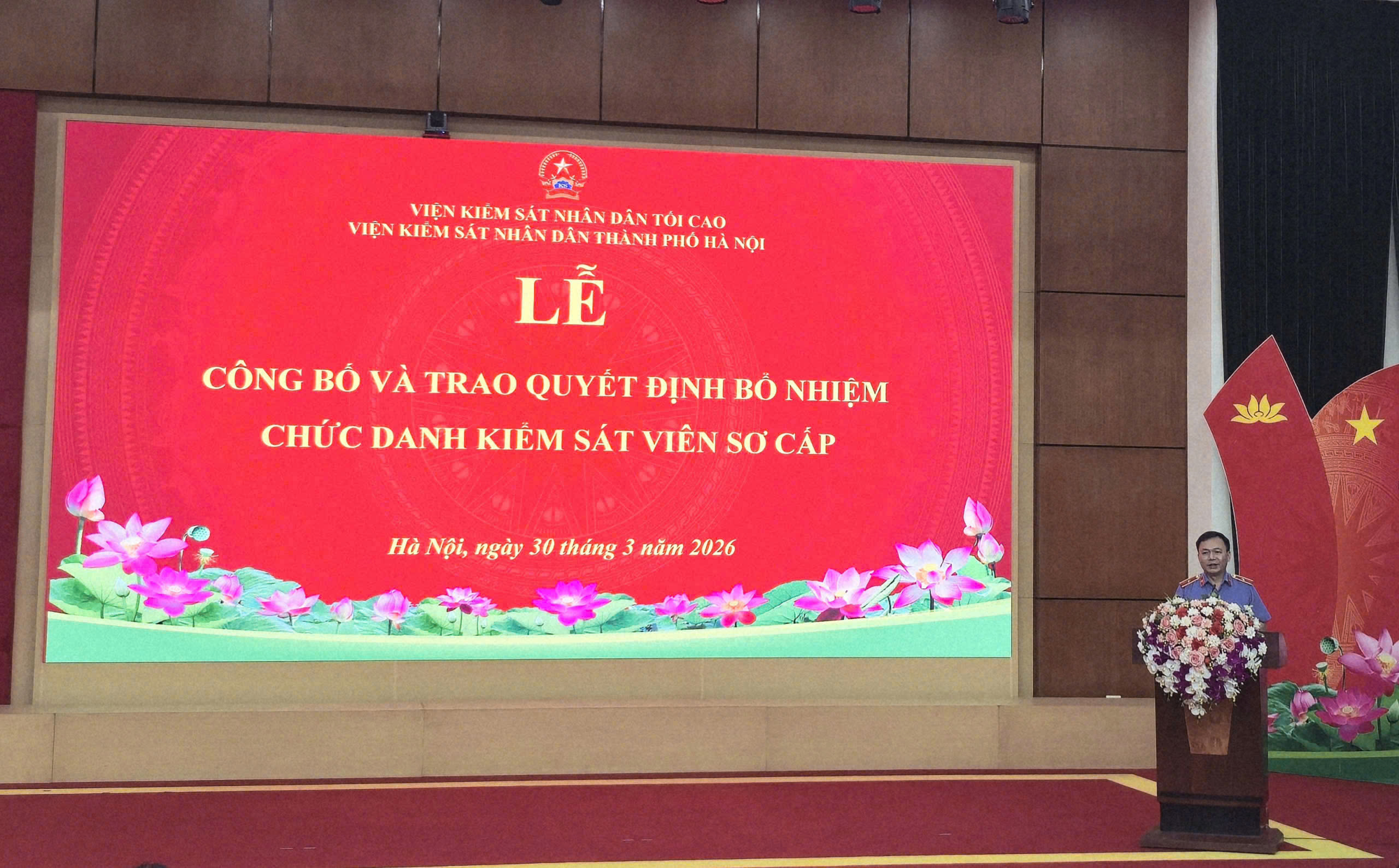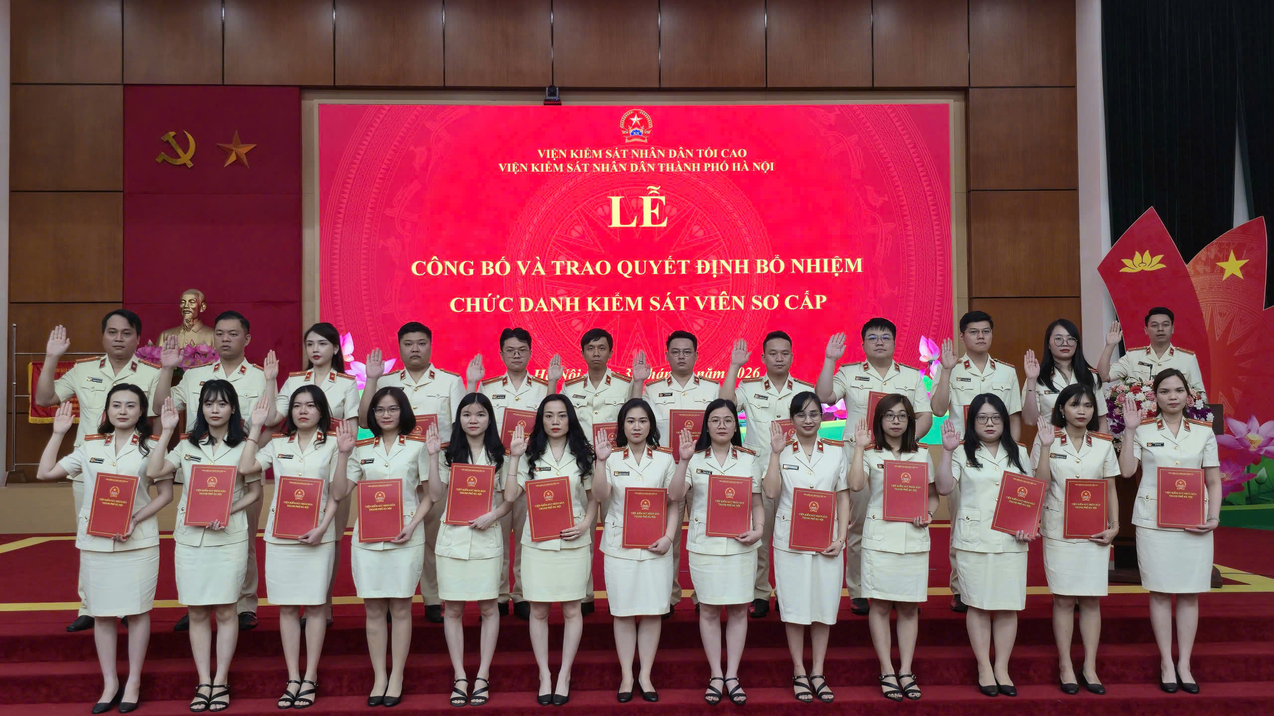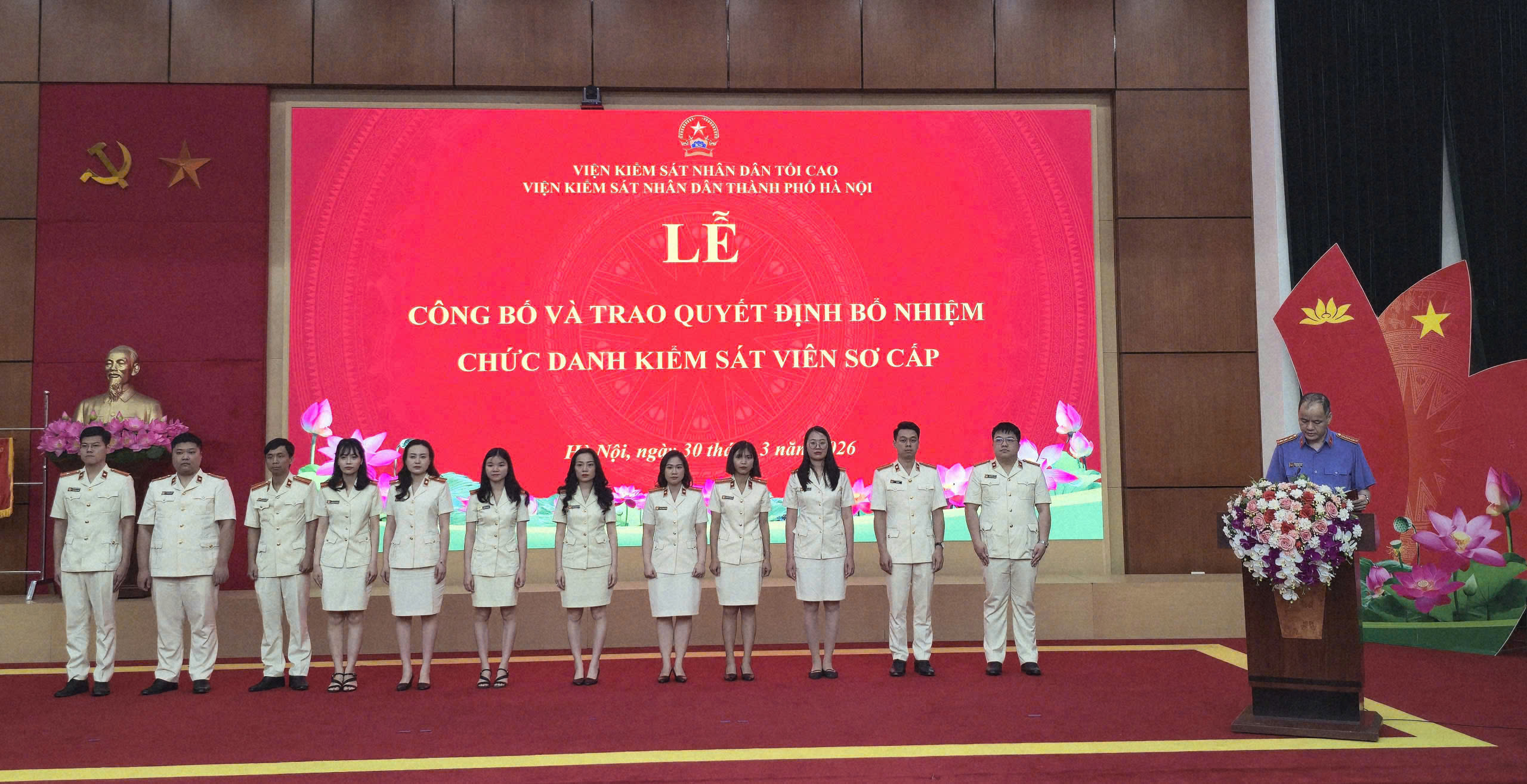 Ngày 30/3/2026, Viện KSND thành phố Hà Nội đã tổ chức Lễ công bố và trao Quyết định bổ nhiệm chức danh Kiểm sát viên sơ cấp. Đồng chí Đào Thịnh Cường - Thành ủy viên, Bí thư Đảng ủy, Viện trưởng Viện KSND Thành phố dự và chỉ đạo buổi Lễ.