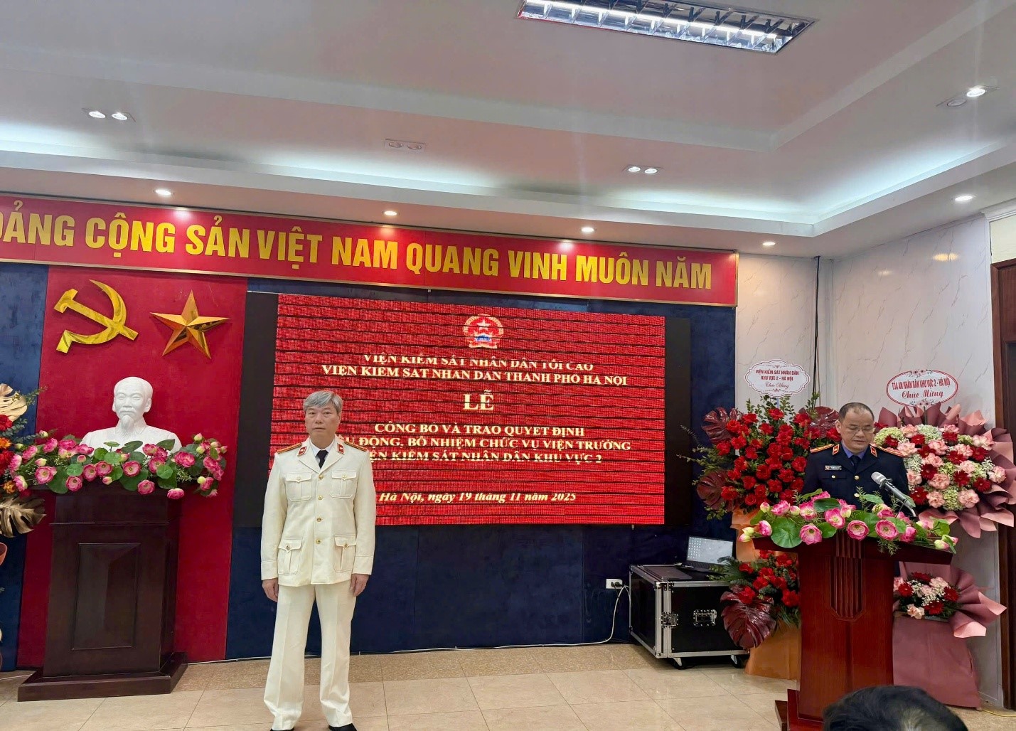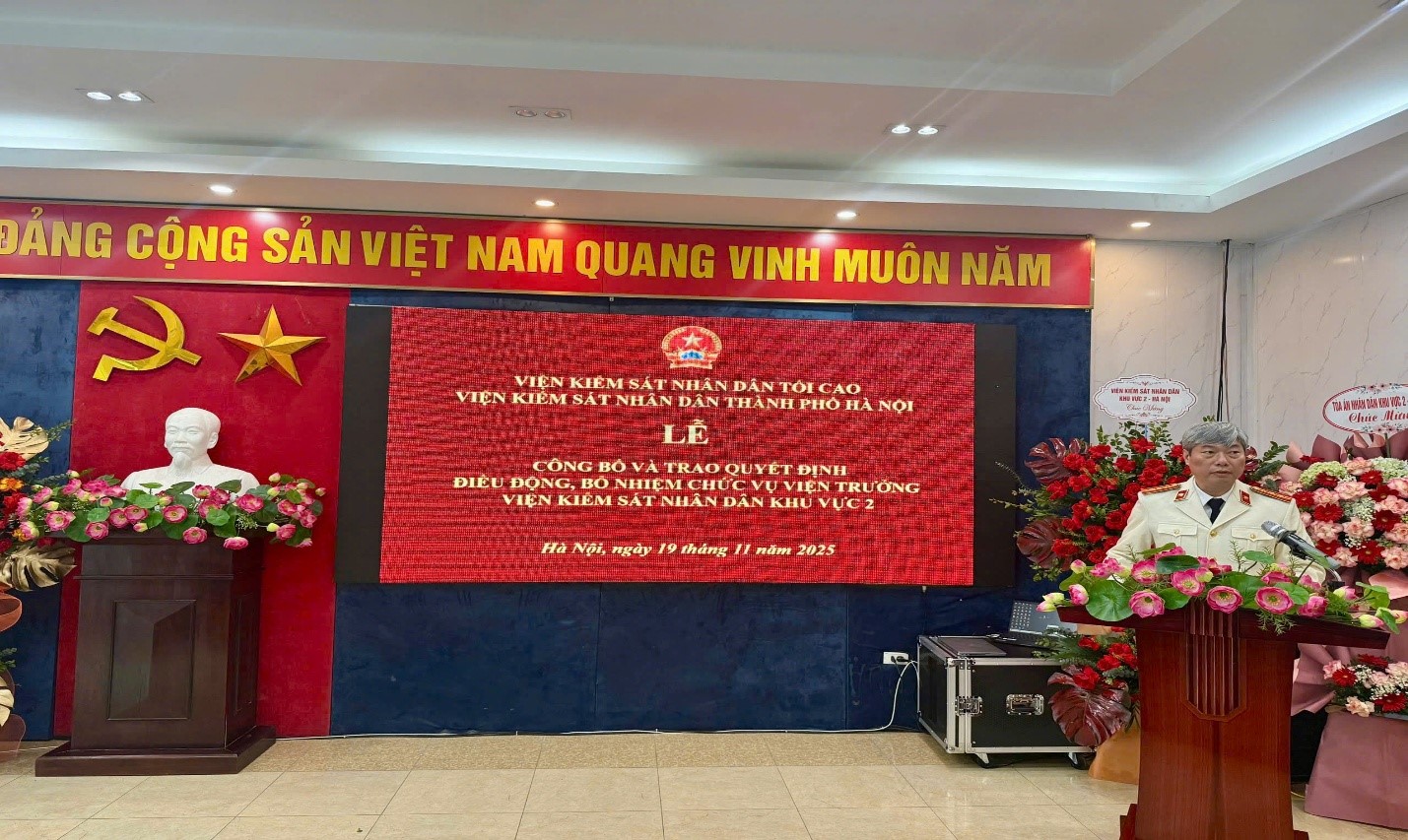 Tại buổi lễ, theo sự phân công, đồng chí Nguyễn Thành Thủy - Trưởng phòng Tổ chức cán bộ đã công bố quyết định của Viện trưởng Viện KSND tối cao về việc điều động, bổ nhiệm đồng chí Dương Anh Tuấn - Kiểm sát viên Trung cấp, Trưởng phòng 2 Viện KSND thành phố Hà Nội giữ chức vụ Viện trưởng Viện KSND khu vực 2, thành phố Hà Nội, nhiệm kỳ 05 năm, kể từ ngày 15/11/2025.