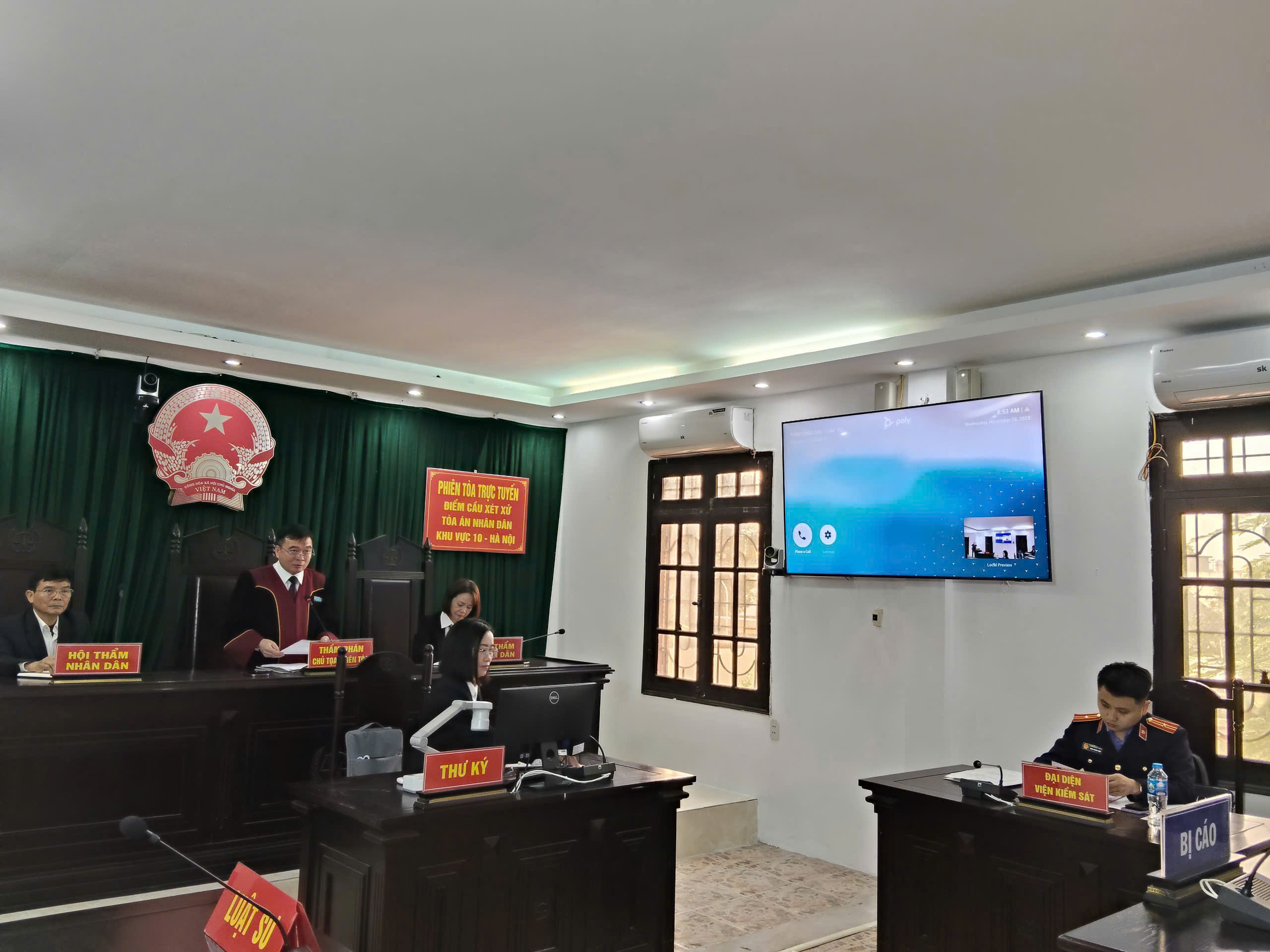 Phiên tòa xét xử trực tuyến được diễn ra theo đúng trình tự, thủ tục luật định. Tại điểm cầu Trại tạm giam số 1 - Công an thành phố Hà Nội sử dụng các thiết bị điện tử kết nối với nhau thông qua môi trường mạng, cho phép bị cáo tham gia phiên tòa tại điểm cầu Trại tạm giam số 1 - Công an thành phố Hà Nội nhưng vẫn bảo đảm theo dõi đầy đủ hình ảnh, âm thanh và tham gia các trình tự, thủ tục tố tụng của phiên tòa bằng lời nói, hành vi tố tụng liên tục, công khai, vào cùng một thời điểm.