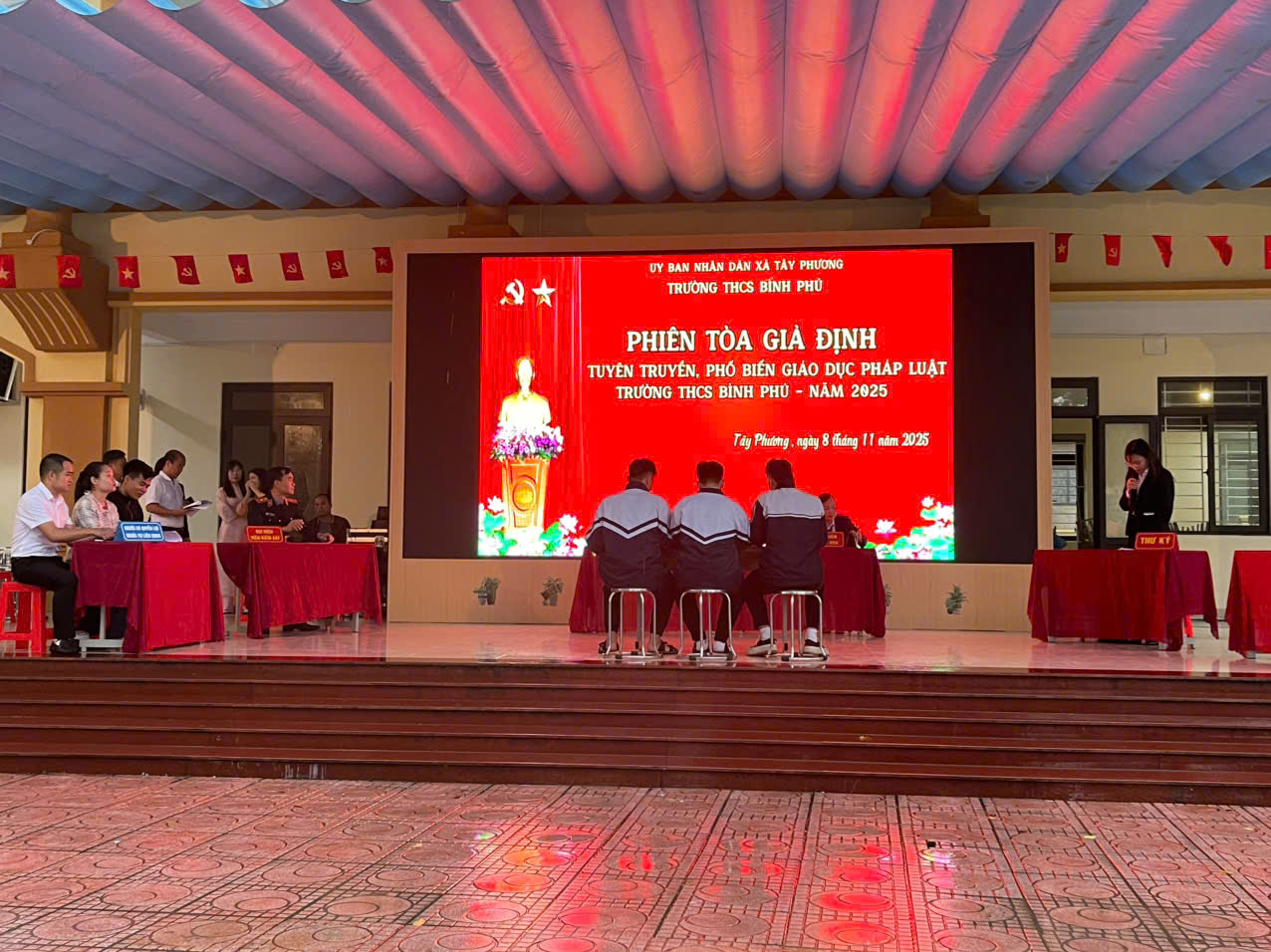 Ngày 08/11/2025, tại Trường Trung học cơ sở Bình Phú, xã Tây Phương, TP. Hà Nội, đơn vị tiếp tục tổ chức phiên tòa giả định xét xử vụ án “Gây rối trật tự công cộng và Cố ý gây thương tích”. Thông qua tình huống vụ án được tái hiện, người tham dự nhận thức rõ hơn mức độ nguy hiểm của các hành vi tụ tập, đánh nhau, xâm phạm sức khỏe người khác; từ đó được định hướng nâng cao tinh thần tôn trọng pháp luật, xây dựng môi trường học đường an toàn và văn minh.