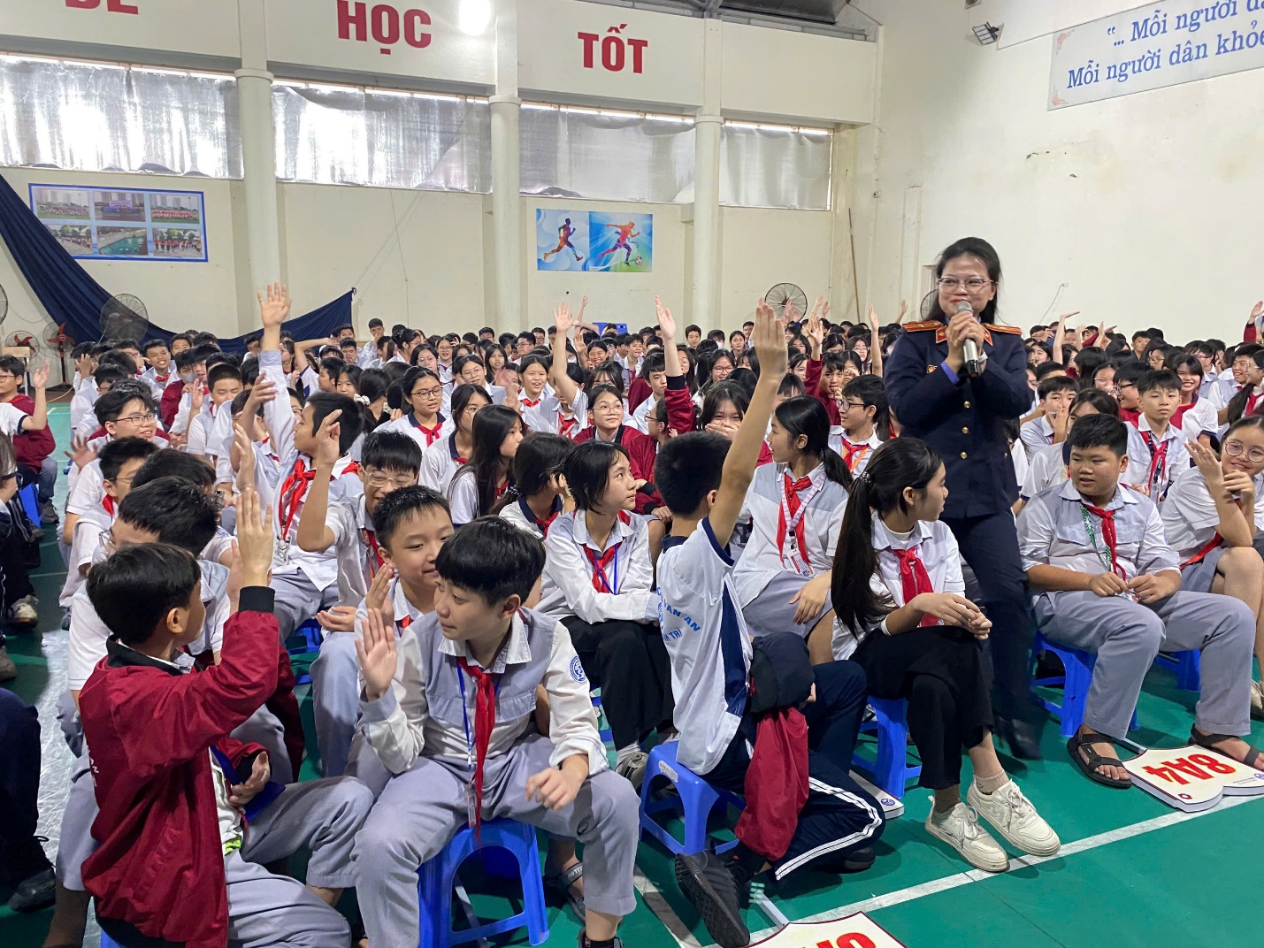 Không khí buổi tuyên truyền diễn ra sôi nổi và hào hứng với sự tham gia của hơn 500 học sinh. Dưới sự phối hợp giữa Viện KSND khu vực 11 và Ban Giám hiệu nhà trường, chương trình đã trở thành diễn đàn pháp lý gần gũi, giúp các em tiếp cận kiến thức pháp luật thông qua hình thức sinh động, dễ hiểu và phù hợp với lứa tuổi. Nội dung trọng tâm tập trung vào việc phòng ngừa bạo lực học đường, xâm hại trẻ em và ứng xử văn minh trên môi trường mạng – những vấn đề thời sự đang được toàn xã hội quan tâm. Phần tiểu phẩm tình huống “Phòng chống bạo lực học đường” do chính các em học sinh thể hiện đã mang đến những giây phút xúc động, chân thực. Mỗi câu chuyện nhỏ chứa đựng thông điệp lớn: "bạo lực không bao giờ là cách giải quyết vấn đề, mà chỉ tạo thêm tổn thương và hậu quả pháp lý". Sau từng tình huống, Kiểm sát viên phân tích, hướng dẫn và định hướng cho các em cách kiểm soát cảm xúc, tôn trọng bạn bè, biết xin lỗi và biết tha thứ – những giá trị đạo đức cốt lõi giúp hình thành nhân cách đẹp của người học sinh trong thời đại mới.