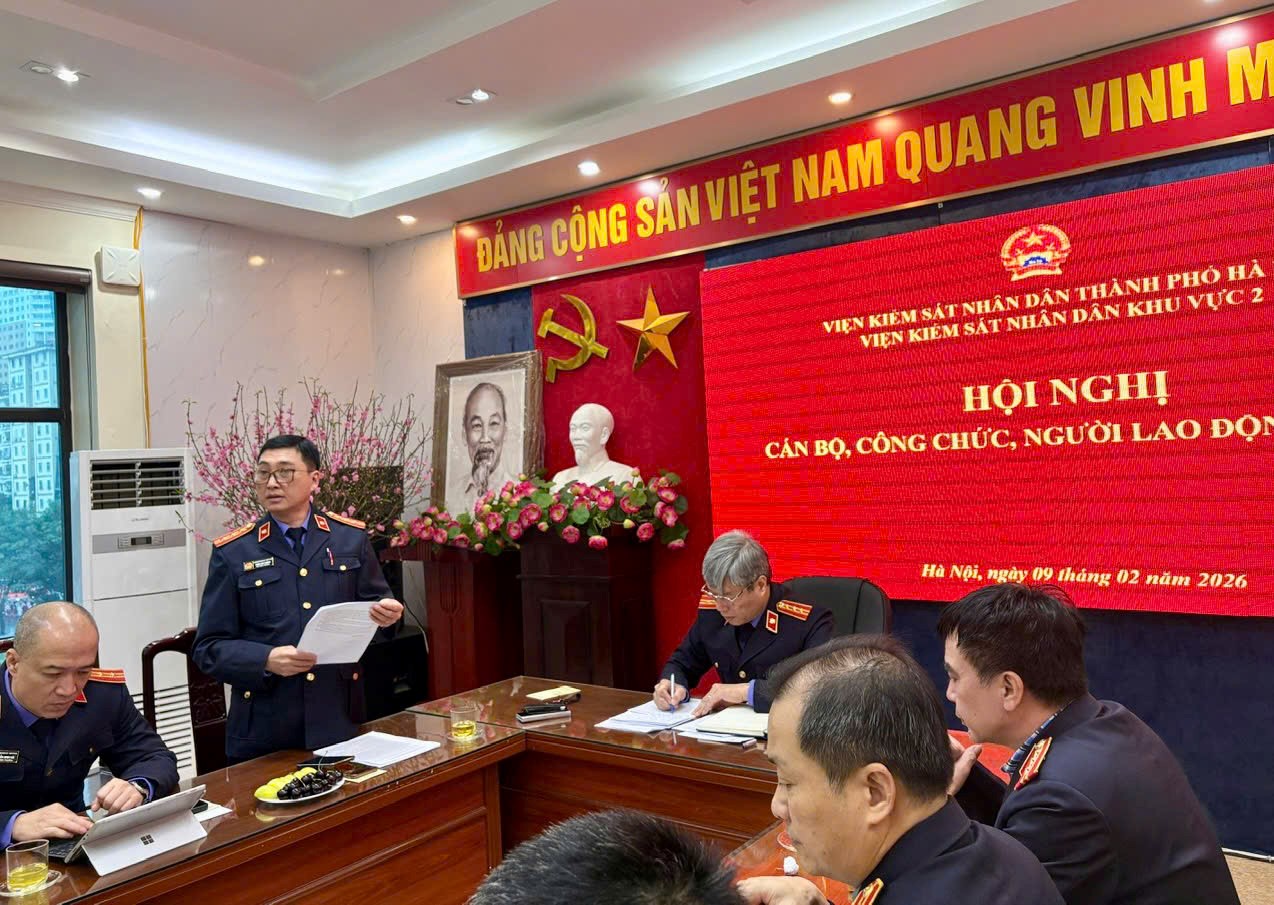 Thực hiện quy định của Luật Thực hiện dân chủ ở cơ sở và hướng dẫn của Ngành, ngày 09 tháng 02 năm 2026, Viện KSND khu vực 2, thành phố Hà Nội đã tổ chức Hội nghị cán bộ, công chức, người lao động năm 2026. Hội nghị là dịp quan trọng nhằm phát huy quyền làm chủ của cán bộ, công chức và đánh giá kết quả thực hiện nhiệm vụ chính trị công tác quản lý, điều hành của đơn vị trong năm 2025, đồng thời đề ra phương hướng, nhiệm vụ và giải pháp thực hiện trong năm 2026.