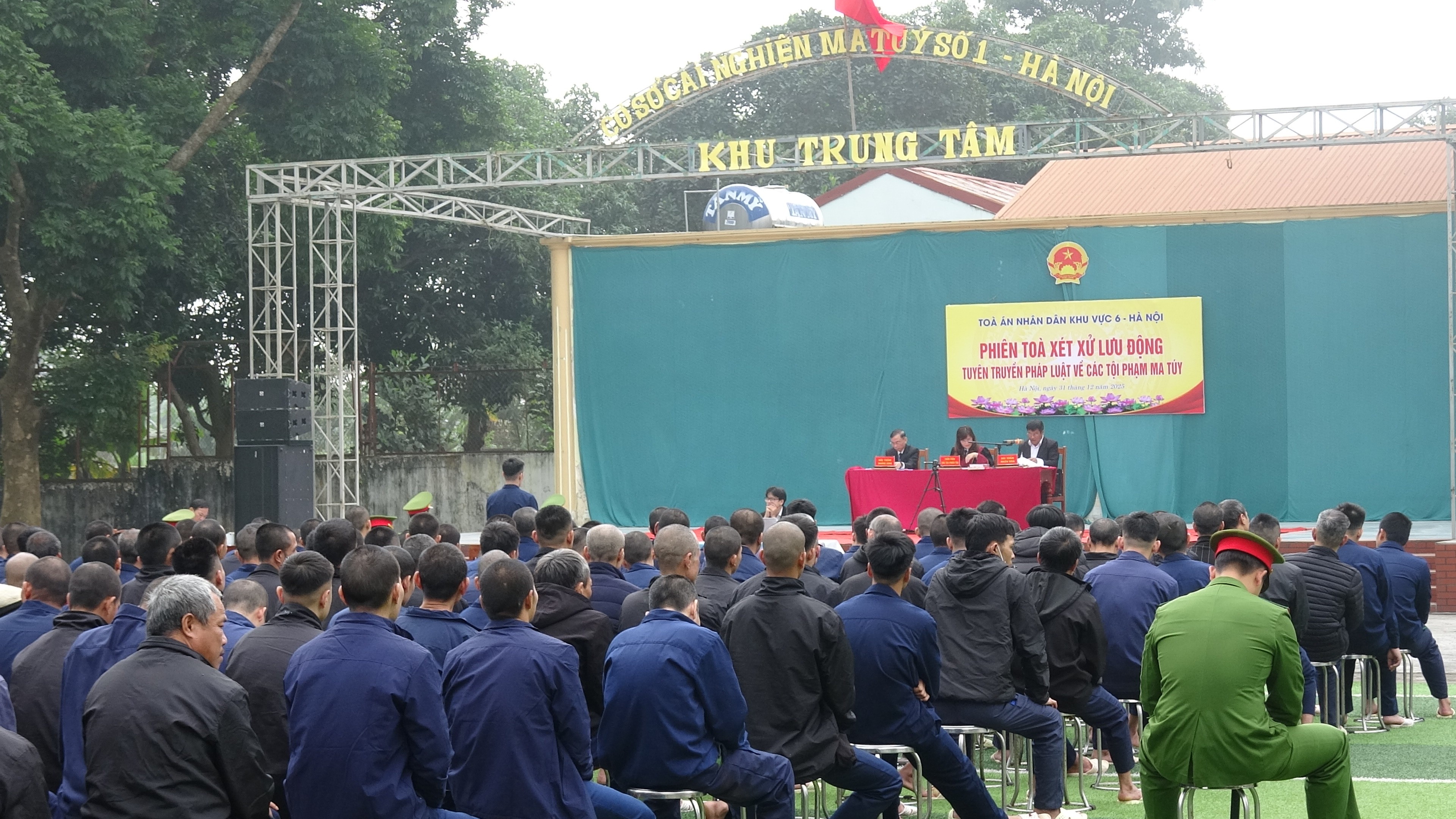 Ngày 31/12/2025, Viện KSND khu vực 6, Hà Nội đã phối hợp với Tòa án nhân dân khu vực 6, Phòng Cảnh sát điều tra tội phạm ma túy Công an thành phố Hà Nội mở phiên tòa xét xử lưu động tại Cơ sở cai nghiện ma túy số 1, Công an thành phố Hà Nội đối với vụ án Ng V.T phạm tội “Sử dụng trái phép chất ma túy” quy định tại khoản 1 Điều 256a Bộ luật Hình sự. Phiên tòa có sự tham gia của hơn 400 học viên cai nghiện tại cơ sở cai nghiện số 1.
