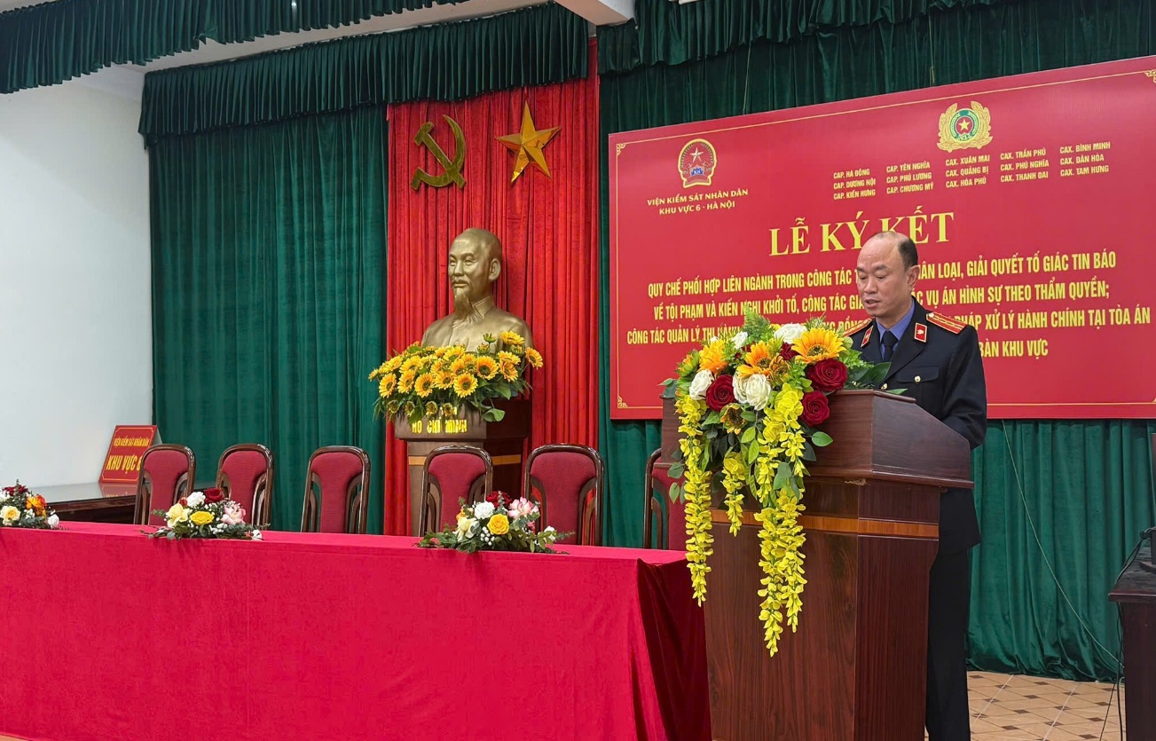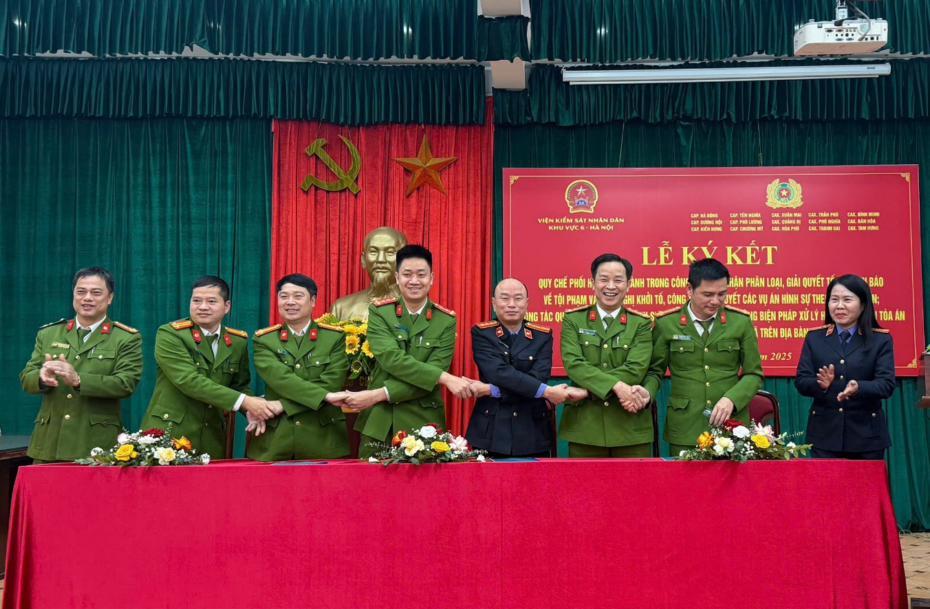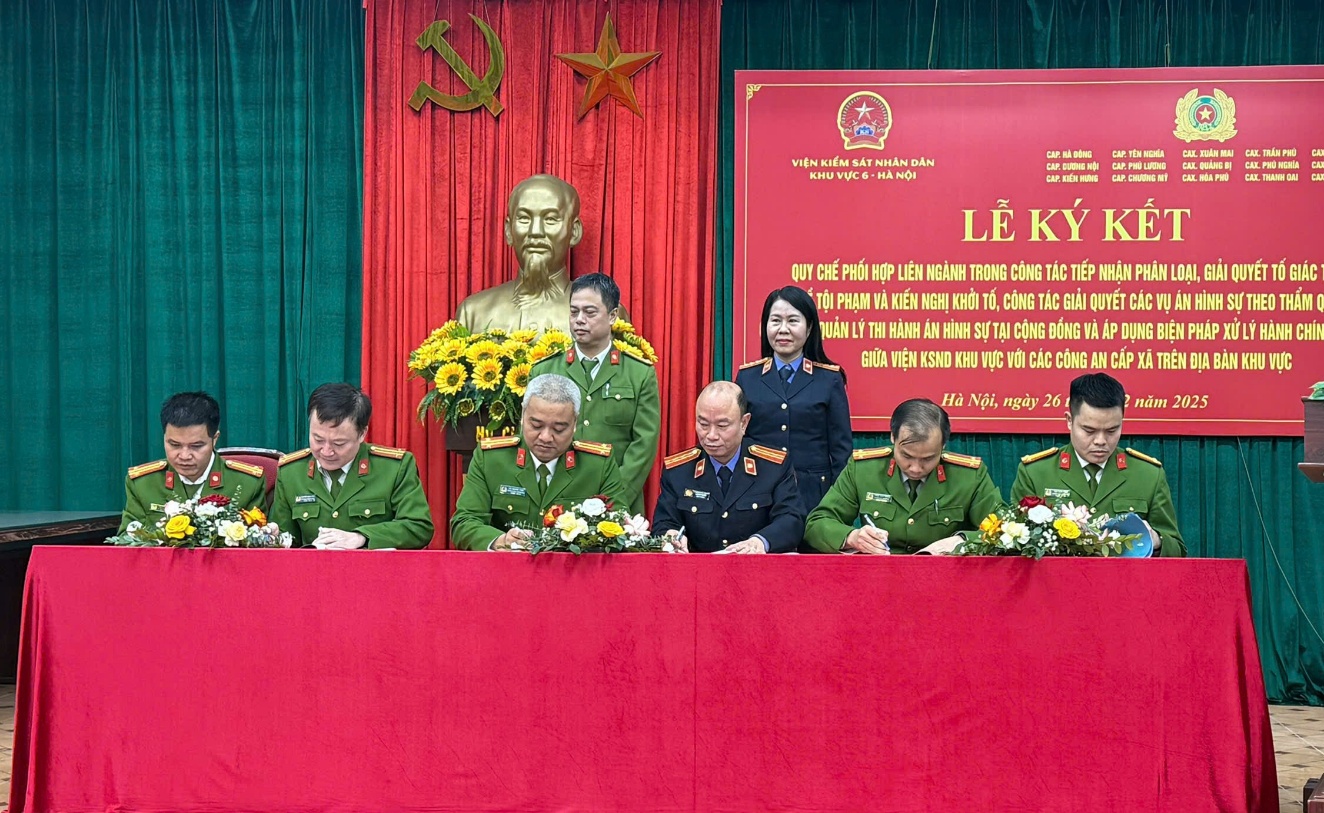 Ngày 26/12/2025, Viện KSND khu vực 6, Hà Nội đã tổ chức Lễ ký kết Quy chế phối hợp liên ngành giữa Viện KSND khu vực 6 và 15 đơn vị công an cấp xã trên địa bàn khu vực trong công tác tiếp nhận phân loại, giải quyết tố giác tin báo về tội phạm và kiến nghị khởi tố, công tác giải quyết án hình sự; công tác quản lý thi hành án hình sự tại cộng đồng và áp dụng biện pháp xử lý hành chính tại tòa án.