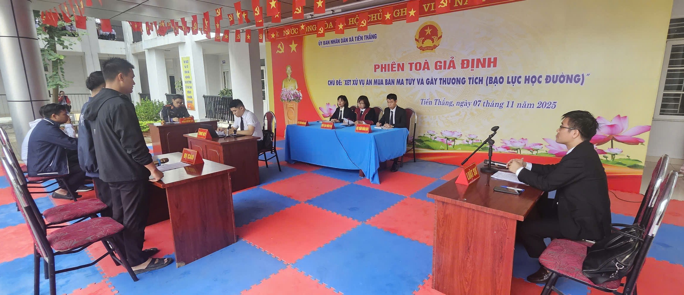 Thực hiện chương trình công tác Đoàn - Hội và phong trào thanh niên năm 2025, nhằm đẩy mạnh việc tuyên truyền, phổ biến, giáo dục pháp luật nâng cao nhận thức, ý thức trách nhiệm của Nhà trường, học sinh chấp hành, tuân thủ các quy định pháp luật, xây dựng lối sống văn hóa, đồng thời, hưởng ứng ngày Pháp luật Việt Nam 9/11, ngày 07/11/2025, Viện KSND khu vực 7 phối hợp với Tòa án nhân dân khu vực 7, UBND xã Tiến Thắng, Trung tâm trợ giúp pháp lý nhà nước thành phố Hà Nội và Trường THCS Tam Đồng, xã Tiến Thắng tổ chức phiên tòa giả định tuyên truyền pháp luật cho hơn 1.000 Giáo viên, học sinh nhà trường.