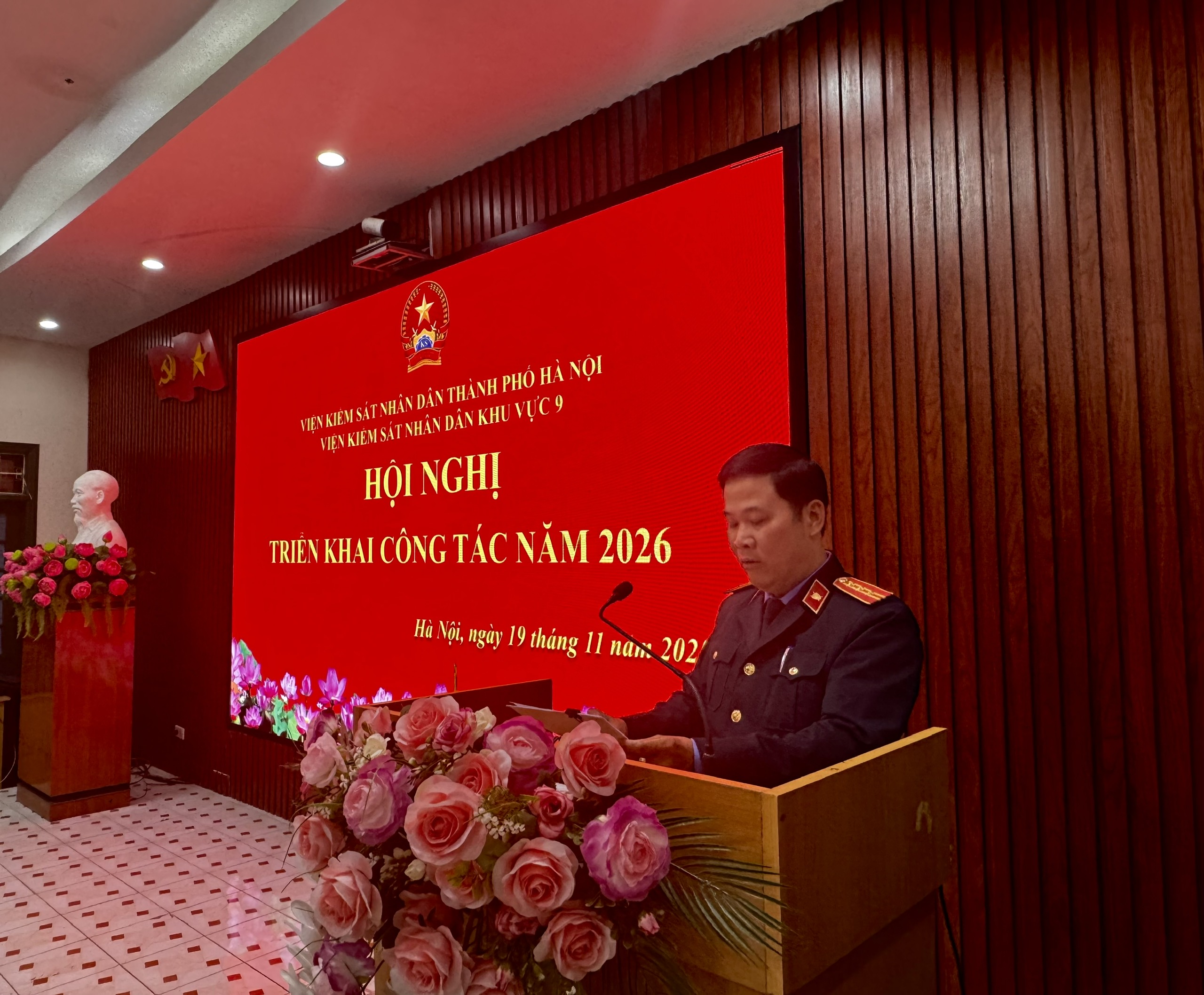 Phát biểu chỉ đạo Hội nghị, đồng chí Ngô Hồng Sơn – Phó Bí thư Đảng ủy, Phó Viện trưởng Viện KSND thành phố Hà Nội ghi nhận những nỗ lực phấn đấu của tập thể Viện KSND khu vực 9. Đồng chí nhấn mạnh yêu cầu đơn vị tiếp tục phát huy tinh thần đoàn kết, trách nhiệm, nâng cao chất lượng thực hành quyền công tố và kiểm sát hoạt động tư pháp; các đồng chí cán bộ, công chức cần thường xuyên cập nhật văn bản pháp luật, chủ động rà soát các vụ án, tin báo tạm đình chỉ, rà soát các vụ án trả điều tra bổ sung, bám sát hệ thống chỉ tiêu mới. Đặc biệt, đồng chí yêu cầu đơn vị chủ động, nghiêm túc triển khai thí điểm khởi kiện vụ án dân sự công ích theo Nghị quyết số 205/2025/QH15, đồng thời tăng cường ứng dụng công nghệ thông tin, chuyển đổi số trong công tác kiểm sát. Bên cạnh đó đơn vị cần bổ sung kế hoạch công tác thống kê tội phạm, công tác tài chính – kế toán, công tác đào tạo bồi dưỡng,… để công tác xây dựng Ngành được toàn diện hơn với phương châm “Đoàn kết, đổi mới - Bản lĩnh, kỷ cương - Chuyên nghiệp, hiện đại”.