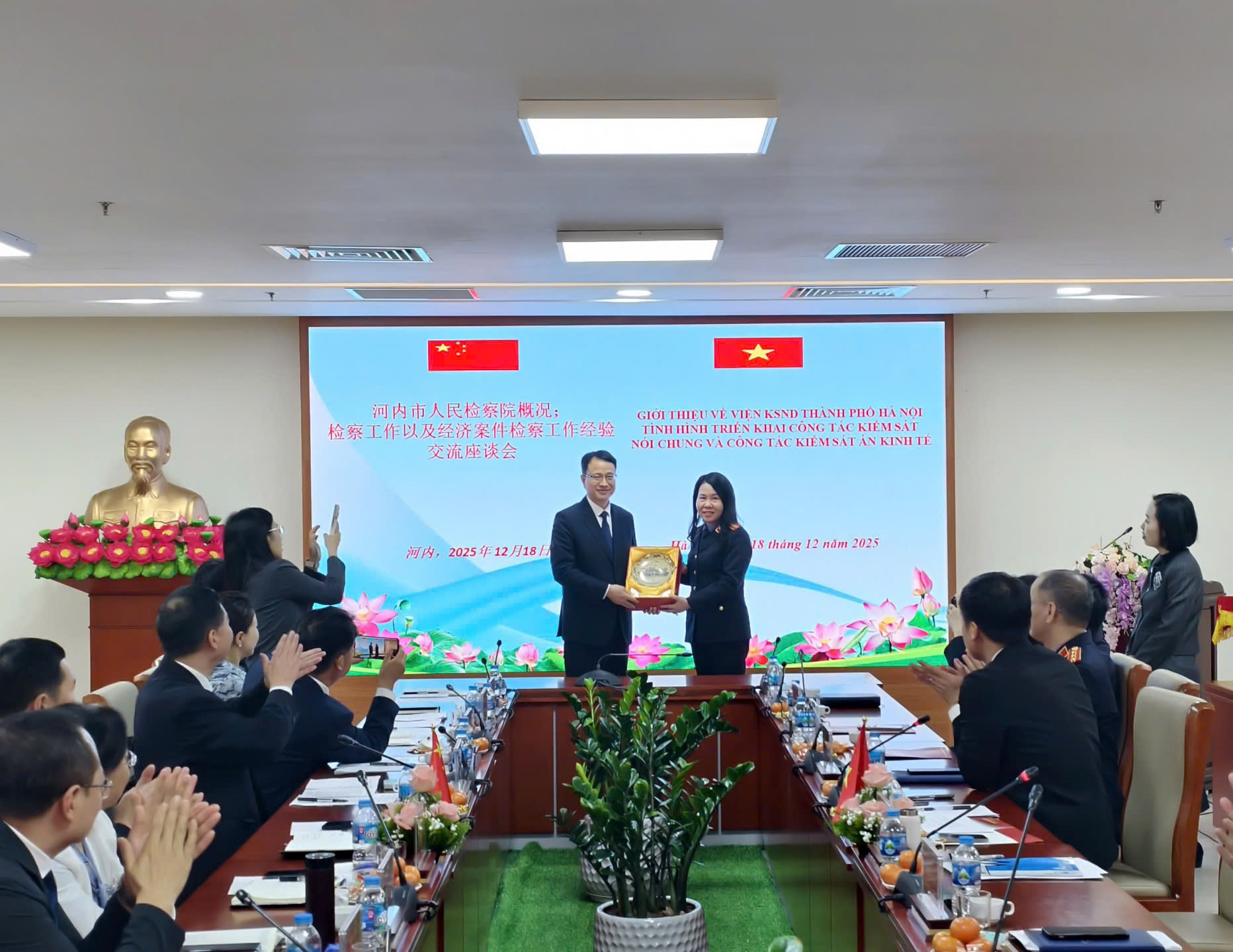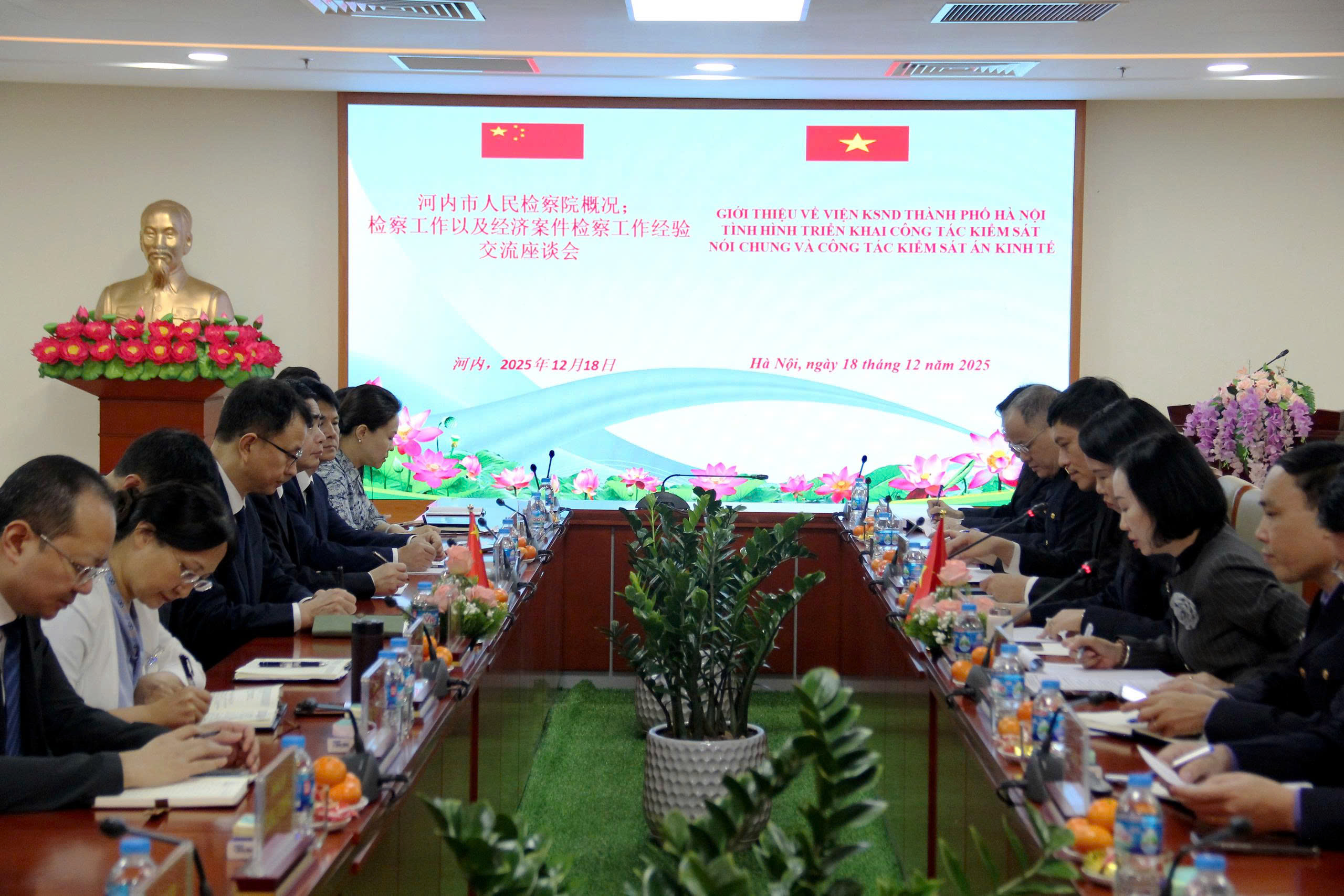 Sáng ngày 19/12/2025, tại trụ sở Viện KSND thành phố Hà Nội, Viện KSND thành phố Hà Nội đã trang trọng tiếp đón và tổ chức toạ đàm với Đoàn công tác Viện KSND tối cao nước CHND Trung Hoa (Trung Quốc). Buổi Toạ đàm là hoạt động chính thức trong khuôn khổ chương trình thăm và làm việc của Đoàn công tác Viện KSND tối cao tại Việt Nam từ ngày 15/12/2025 đến ngày 24/12/2025 theo lời mời của Viện KSND tối cao Việt Nam.